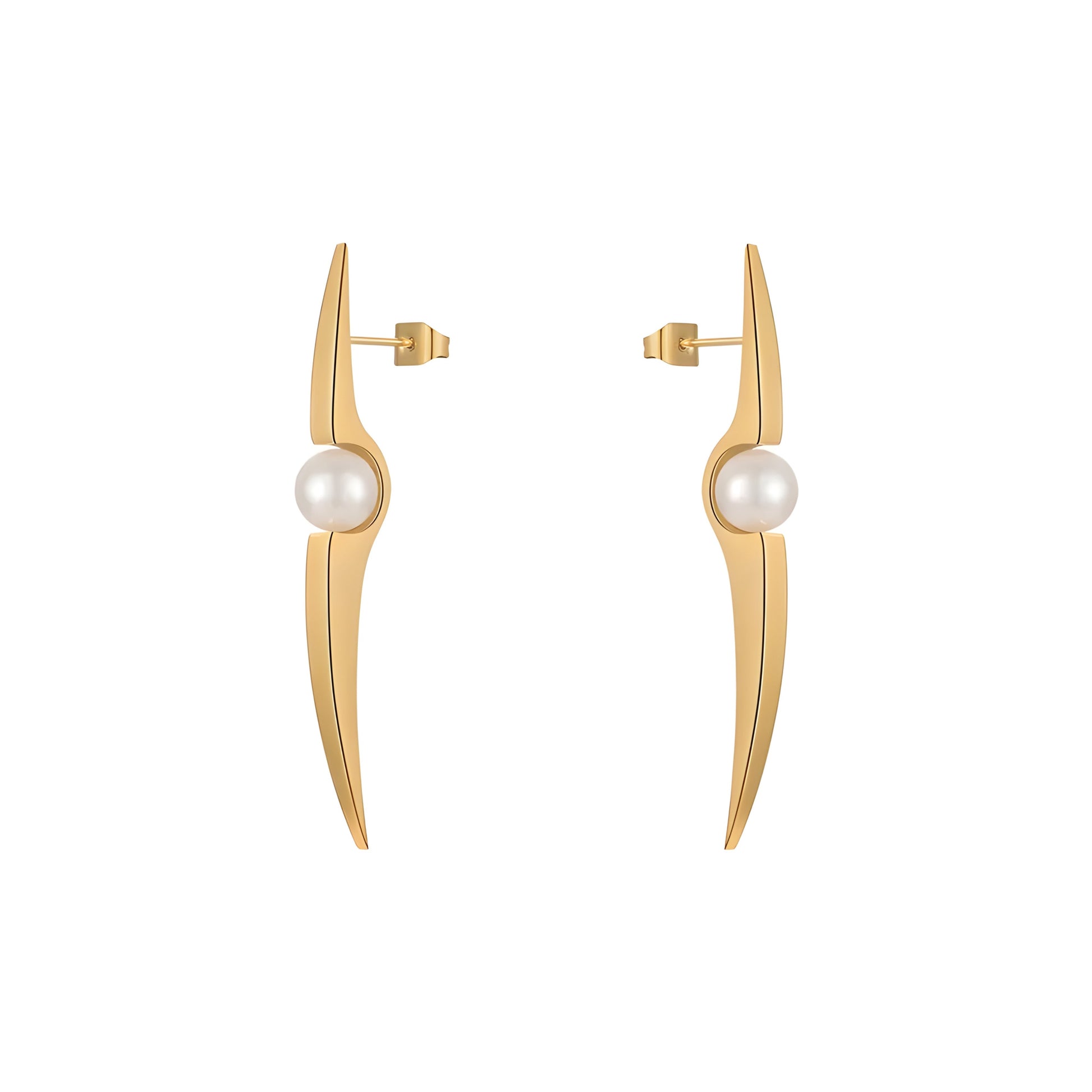 These earrings from the Behi collection feature an elegant and dynamic design inspired by flowing lines. The creative combination of polished gold and natural pearls showcases a perfect harmony between classic and modern elements. This piece is not only a chic accessory to complement both everyday and formal styles but also a reflection of refined taste and creativity in your choice of jewelry.