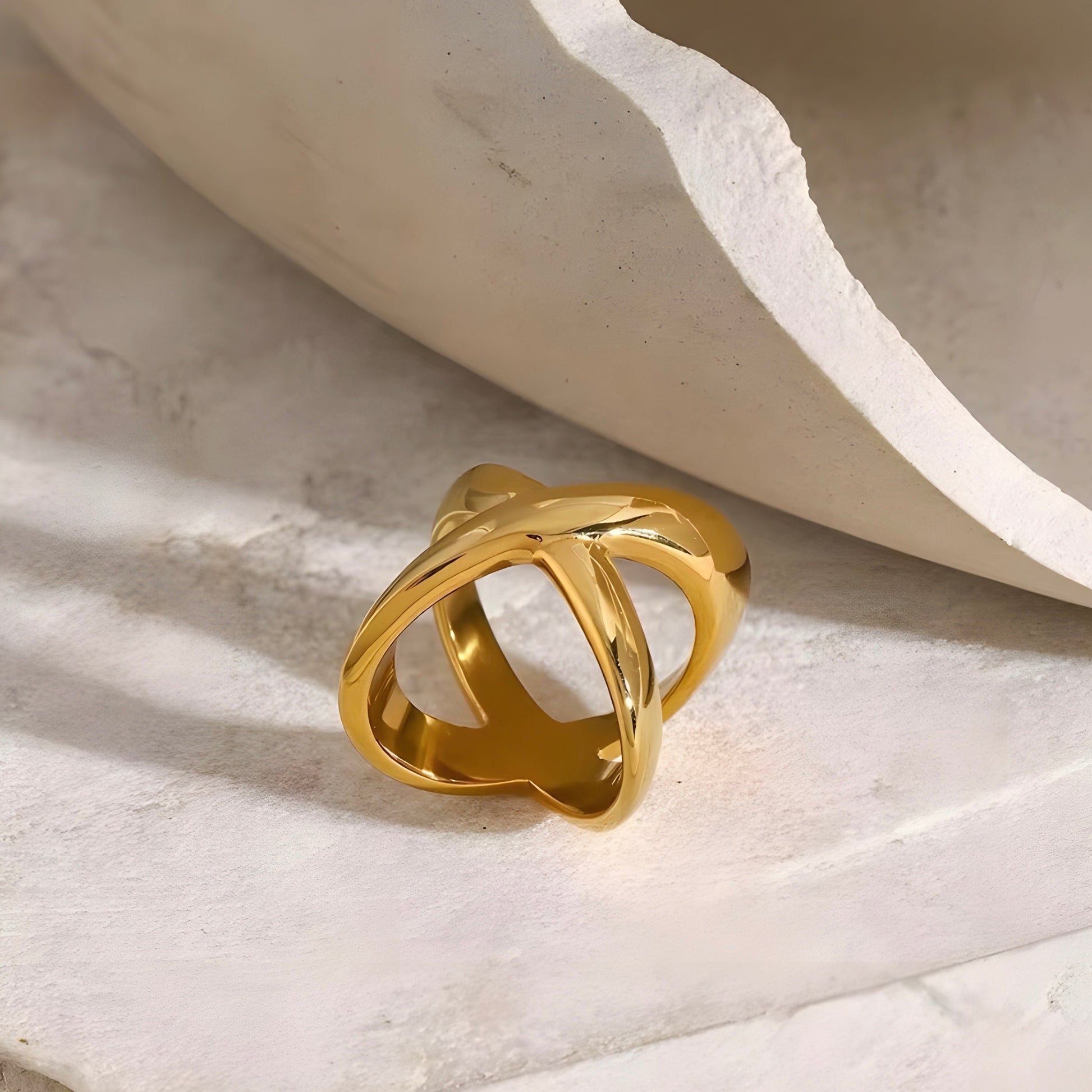 This cross-shaped ring from the BEHI Collection, with its modern and captivating design, combines simplicity and elegance, making it perfect for both everyday wear and special occasions. Its unique design adds a distinctive and eye-catching touch to your look.
