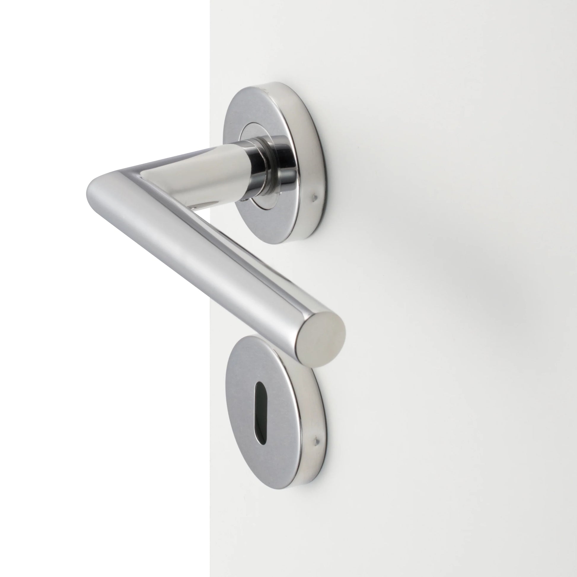 La Maniglia Merope è l’espressione pura della funzionalità elegante. Con il suo profilo tubolare in acciaio cromato lucido e la rosetta tonda, è perfetta per ambienti dove la semplicità si fonde con la brillantezza. Adatta sia a contesti domestici che professionali, si integra con qualsiasi stile.