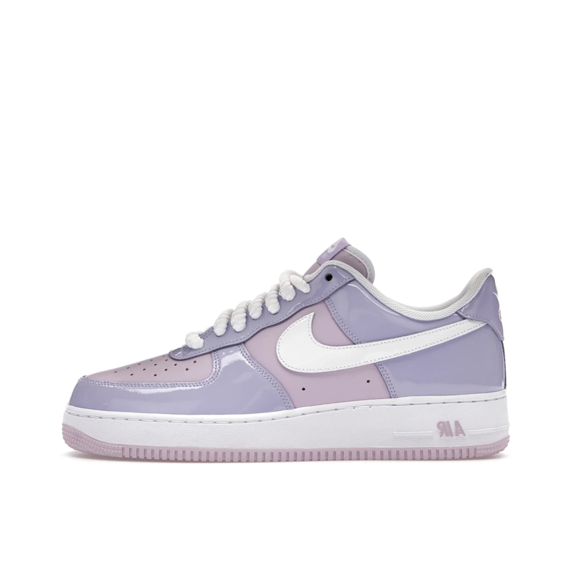 - Materiali Lucidi: La tomaia è realizzata in pelle verniciata che dona una brillantezza elegante e moderna, mantenendo la struttura solida tipica delle AF1.