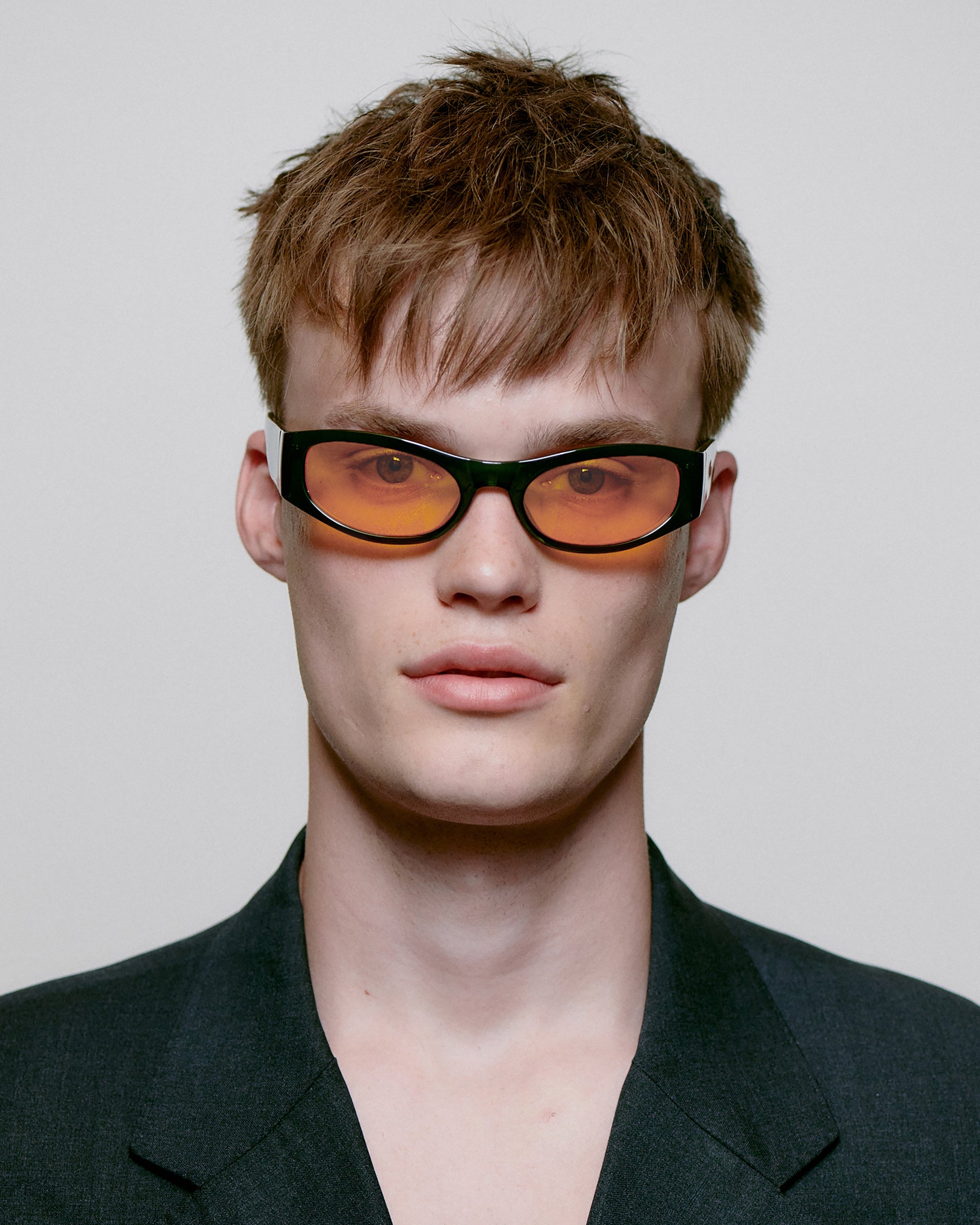 Occhiali da sole rettangolari con montatura trasparente color verde scuro e lenti sfumate color ambra