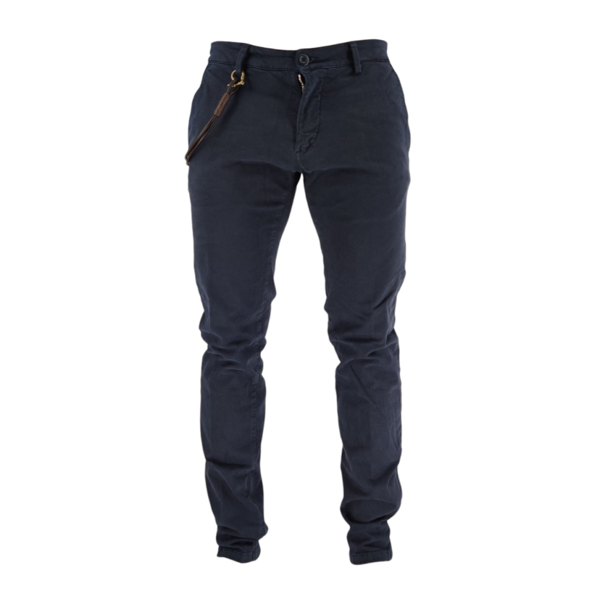 Pantaloni Modfitters realizzati in tunisia, vita media, fissaggio anteriore con zip e tono su tono, due tasche anteriori con apertura verticale, due tasche posteriori una delle quali ha un fissaggio a tono tono-su tono mentre la seconda tasca ha un pulsante Fissaggio con la cresta del produttore, accessorio in pelle decorativa sulla composizione dei loop della cintura rimovibile: 98% di cotone 2% elastano