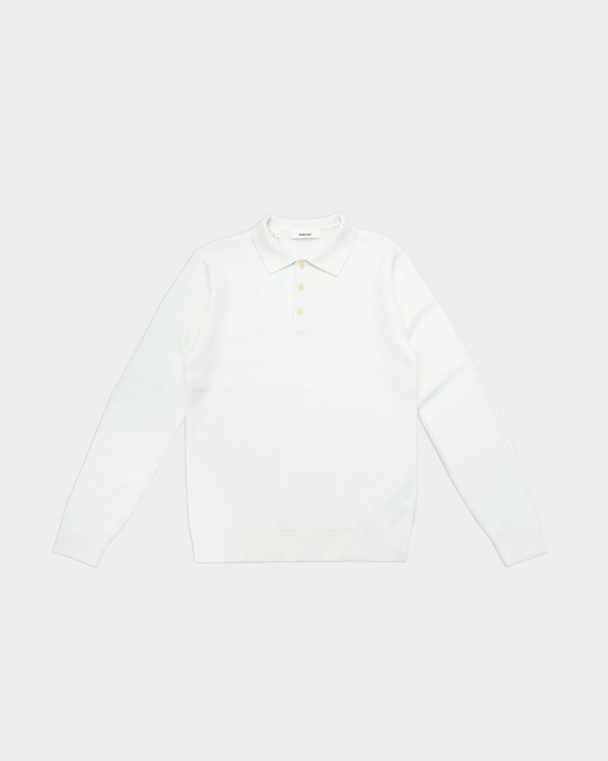 Colore egret con struttura lavorata a maglia, chiusura a tre bottoni sul collo.