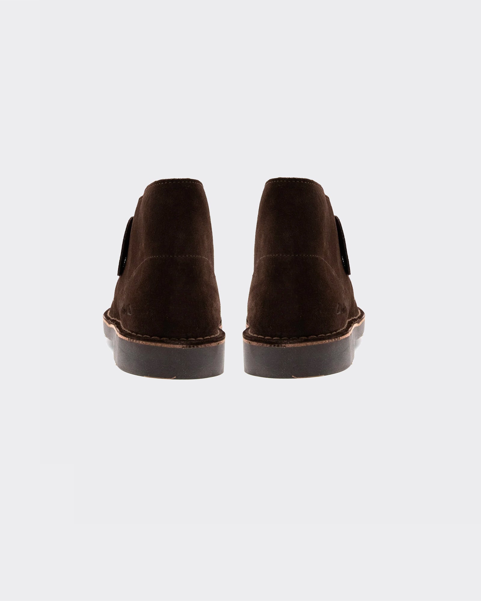 Stivaletto in suede marrone con cuciture a vista. Logo impresso sulla suola e laterale. Etichetta in rilievo sul fianco.