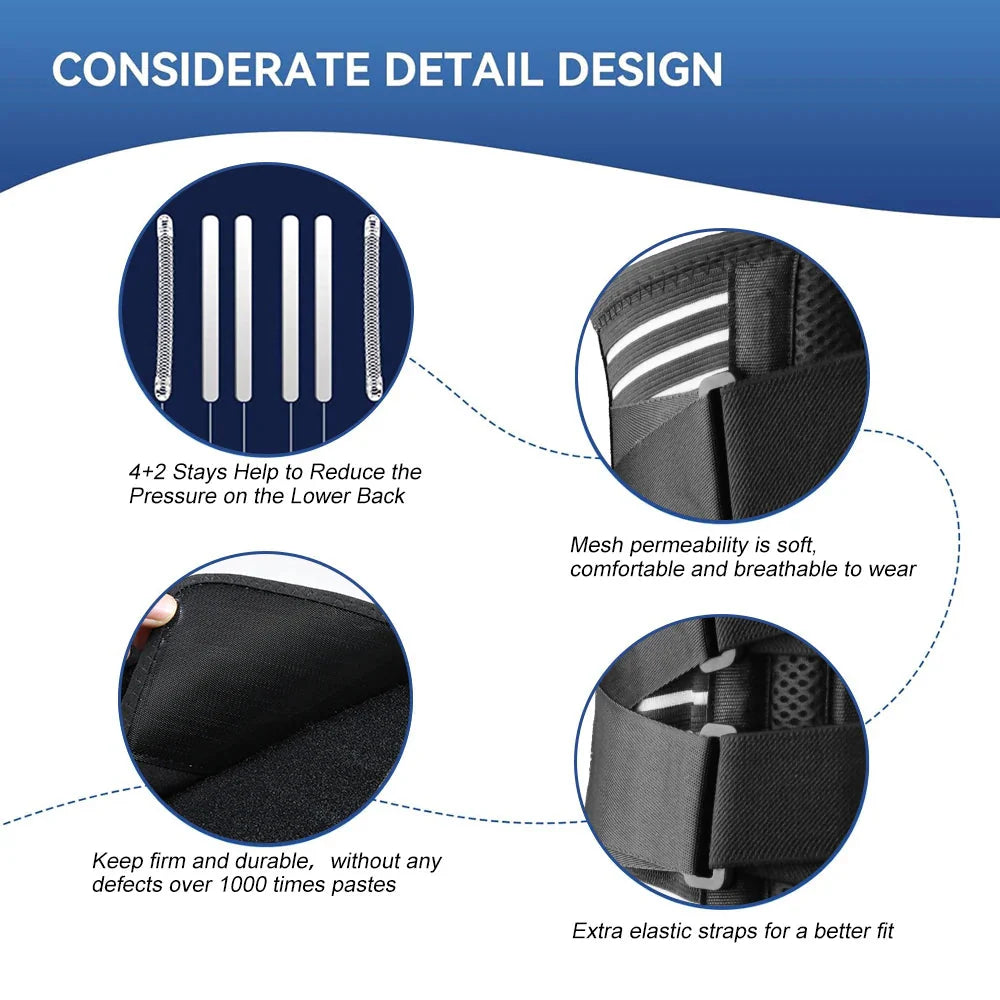 3. Orthopedic Design to Improve Posture - Our back support belt equipped with 4 aluminum vertical support stays along with 2 steel springs which provide adequate support in the lower back areas to ensure proper posture and spine alignment during daily workouts, heavy lifting, gardening, or just doing housework.