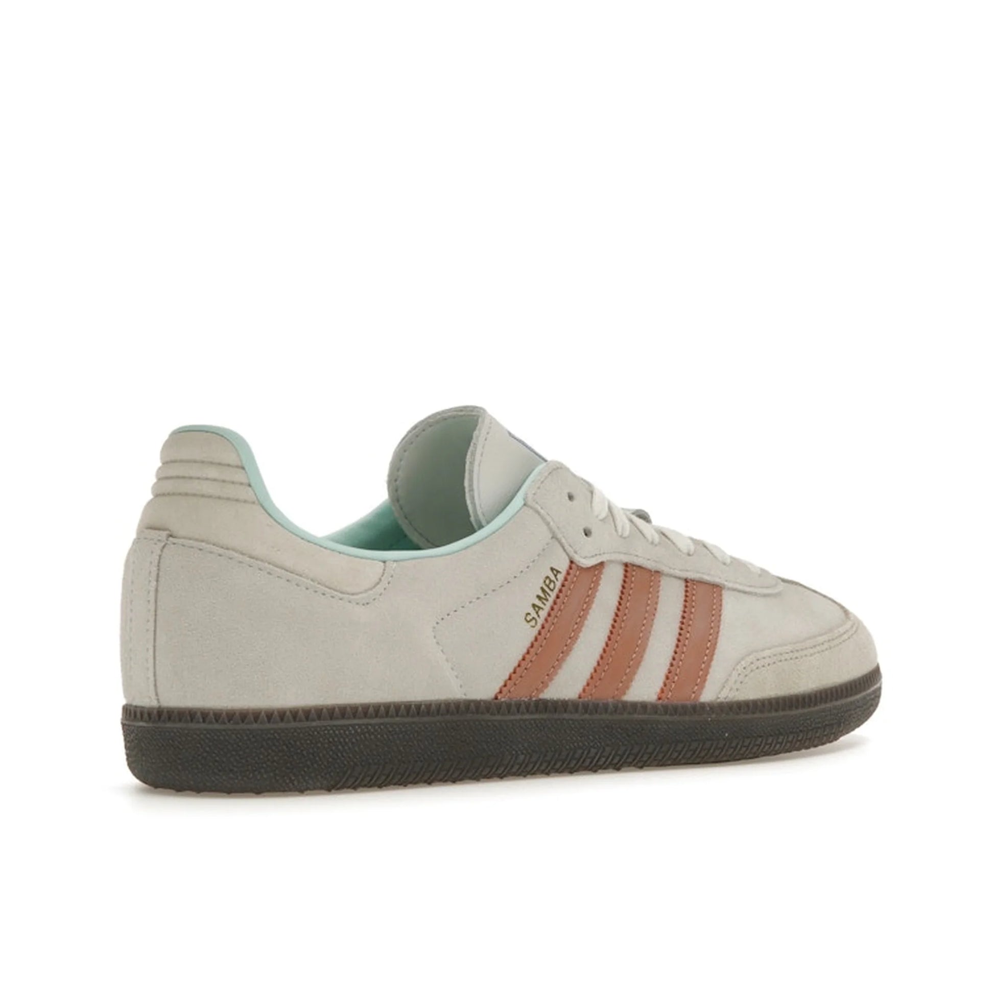 - Colorway: La colorazione "Clay Strata" presenta una combinazione elegante di tonalità terrose. La tomaia in pelle scamosciata marrone chiaro è arricchita da dettagli in marrone scuro e bianco, creando un look naturale e raffinato. Le tre strisce in bianco e il logo dorato "Samba" aggiungono un tocco distintivo.