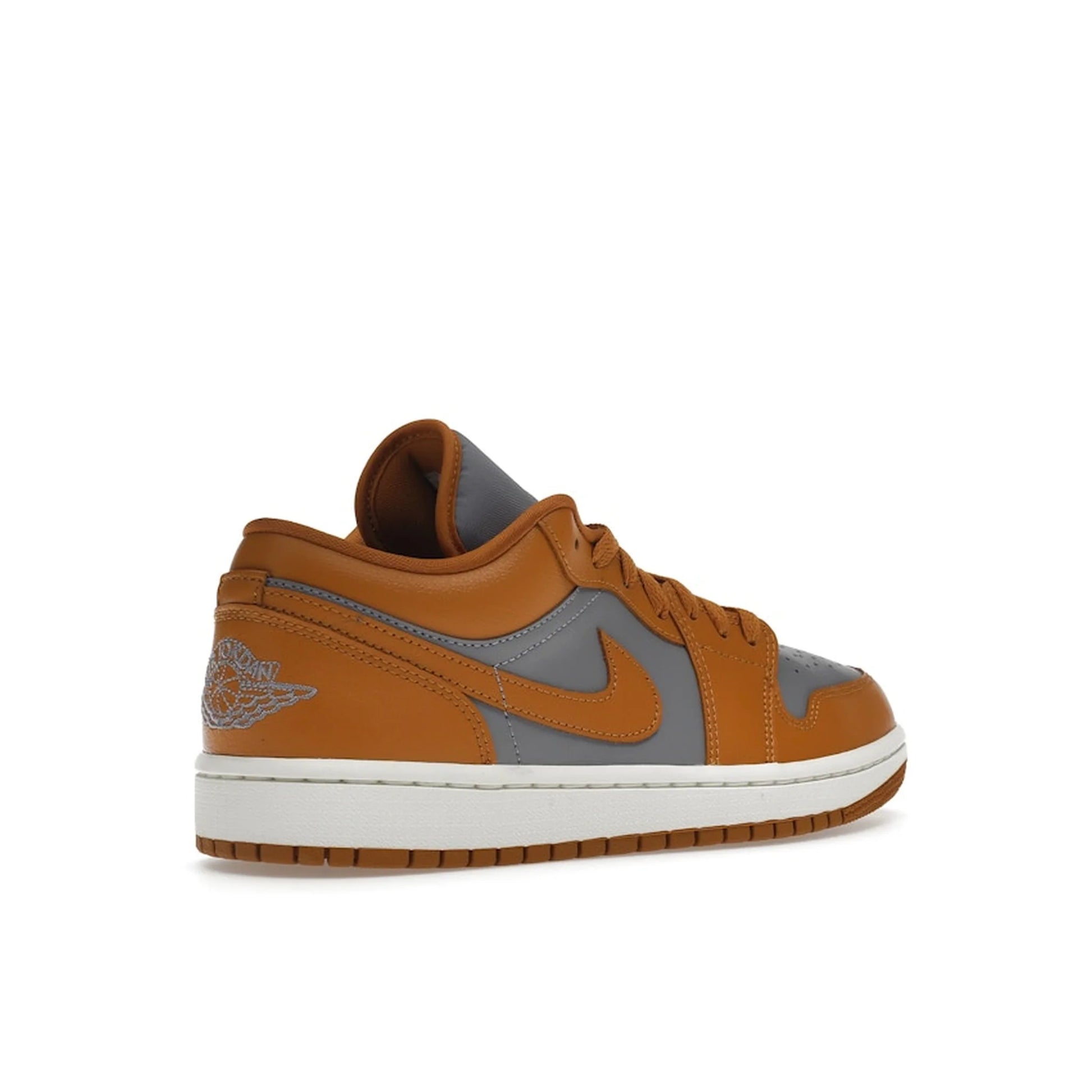 Le Air Jordan 1 Low "Cement Grey Chutney" da donna offrono una reinterpretazione elegante dell'iconica silhouette, combinando tonalità neutre con dettagli caldi per un look sofisticato e versatile.