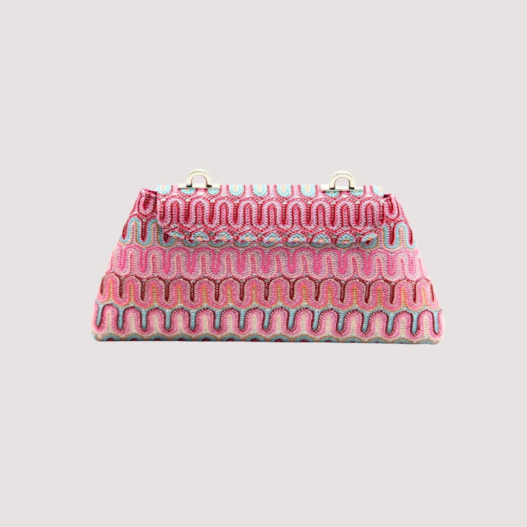 Lovingly handcrafted in the picturesque village of Volpara, Italy, every piece is a true work of art. Imagine owning a bag that not only gleams with its glittering jacquard fabric in a bold optical pattern but also epitomizes the height of sustainable luxury.