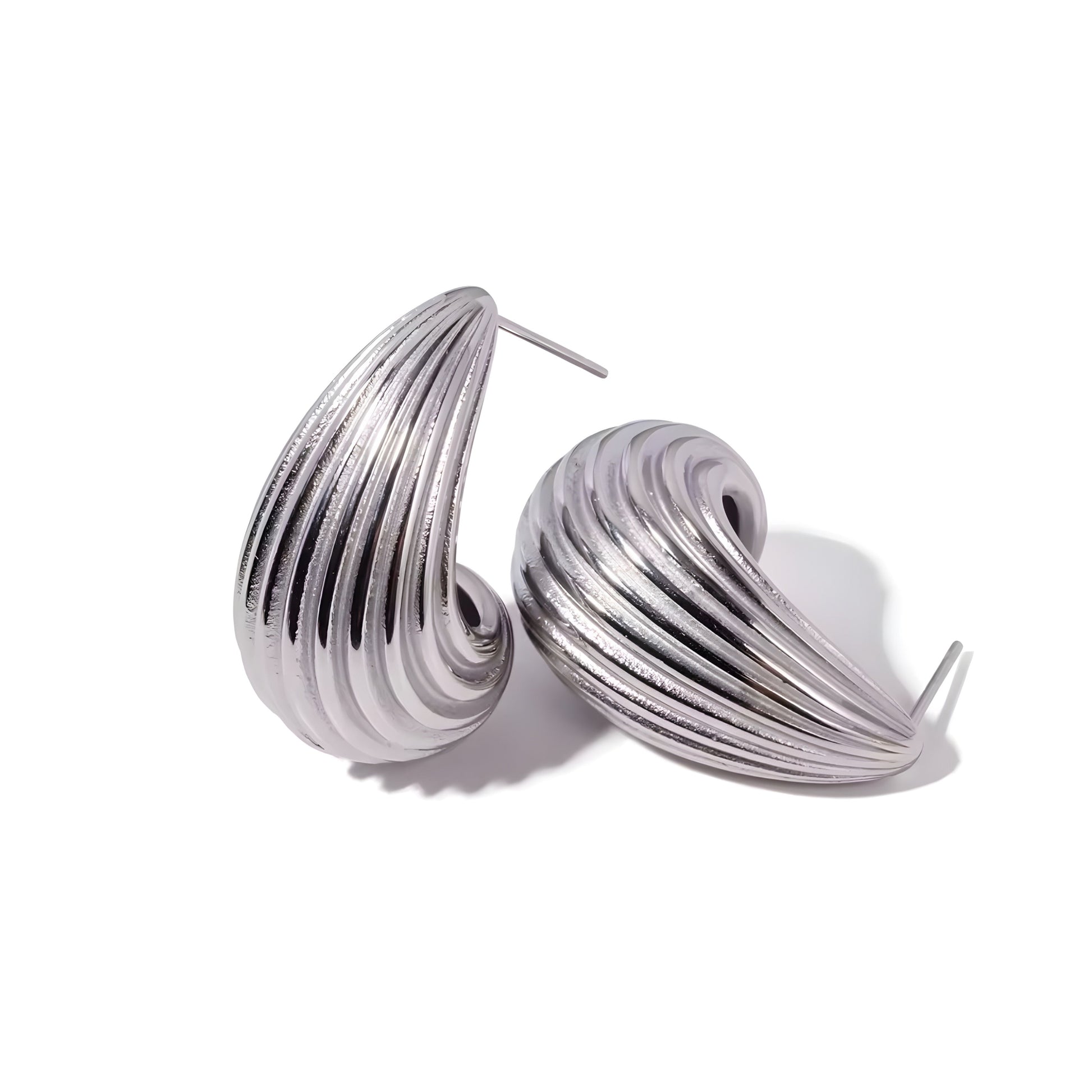 These sculptural gold hoop earrings from Behi Milano are a true statement piece, designed with elegant curves and a bold, ribbed texture. Crafted from high-quality gold-plated stainless steel, they feature a twisted, fluid shape that adds a modern and sophisticated touch to any outfit. The luxurious, polished finish makes them the perfect balance of contemporary and timeless style.
