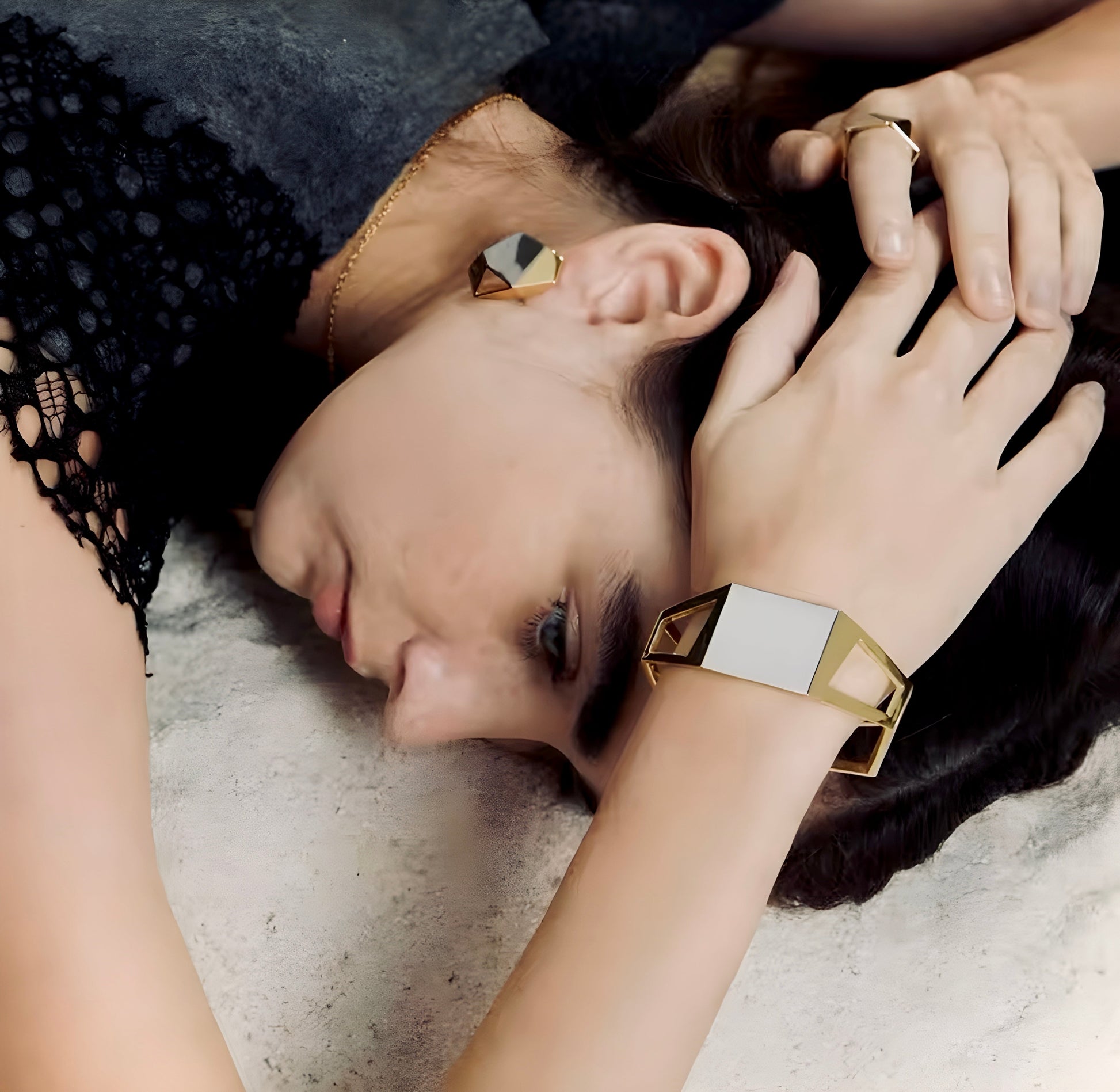 This earring, inspired by architecture and geometric design, symbolizes the power of artistry in accessory design. Its gold and silver color combination creates a unique, almost architectural masterpiece under the light. It pairs effortlessly with the matching bracelet from the same collection, presenting a stunning harmony of design and beauty.