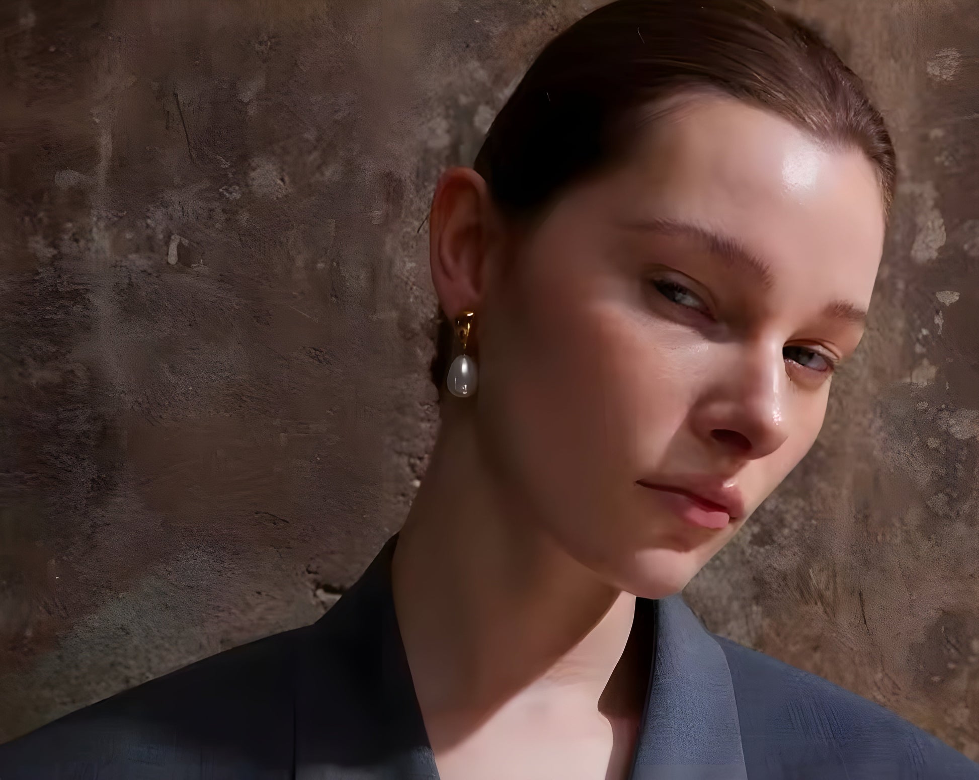 These earrings showcase a perfect blend of simplicity and elegance with their classic design. The top part is crafted from polished gold in a smooth, curved shape, adding a touch of softness and luxury. Hanging below is a large, luminous pearl that complements the shiny gold beautifully. These earrings are an ideal choice for those seeking chic and minimal jewelry with a timeless and sophisticated appeal.