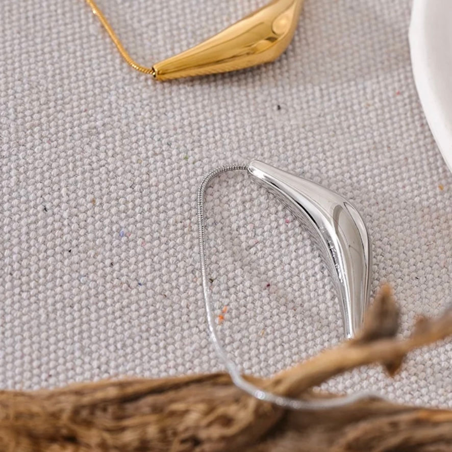 A bold yet minimal statement piece inspired by organic curves and modern form. This gold-plated choker sits elegantly on the collarbone, elevating any outfit with effortless sophistication. Perfect for those who seek quiet power in their accessories.