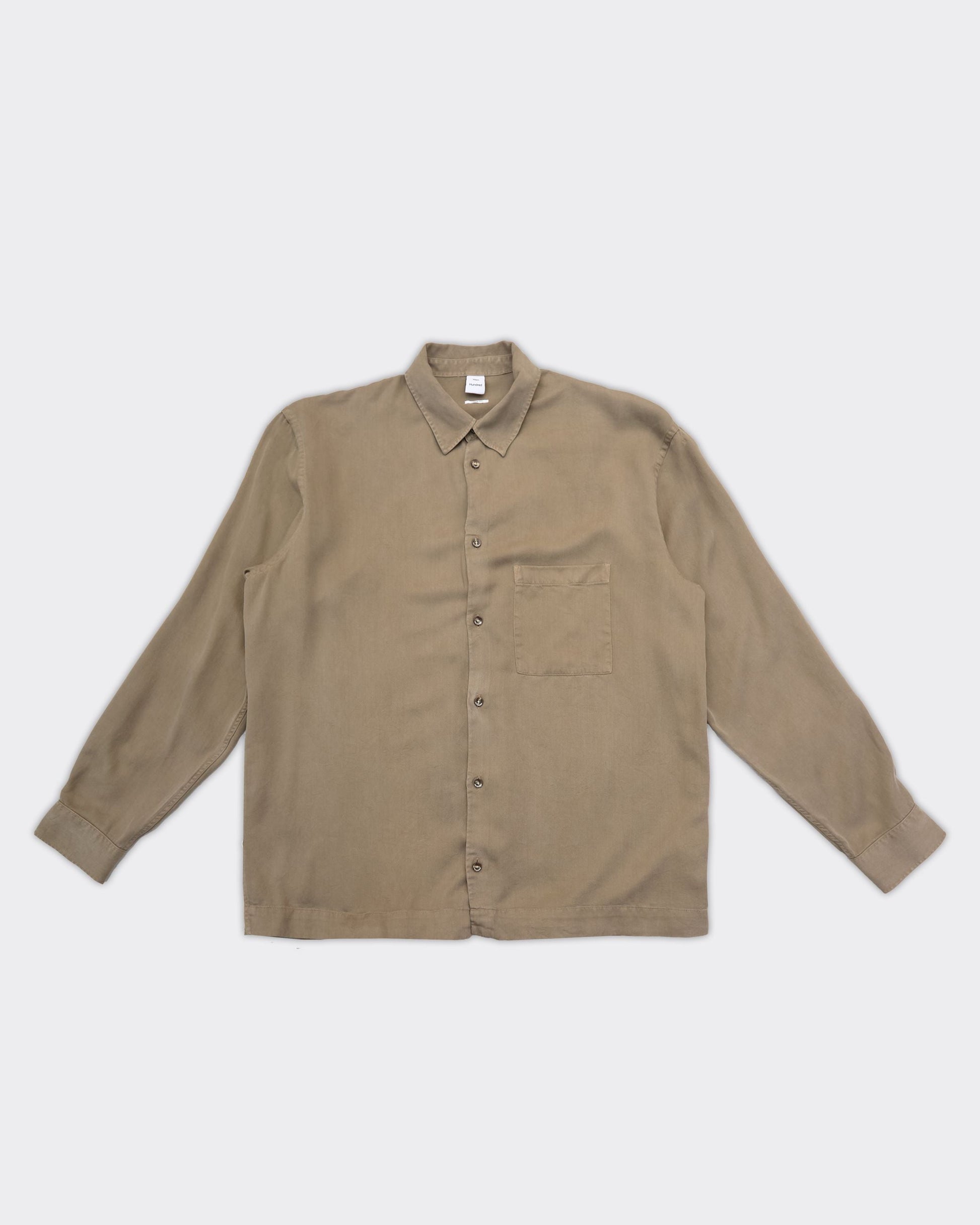 Camicia color kaki con tasca sul petto e bottoni sul fronte.