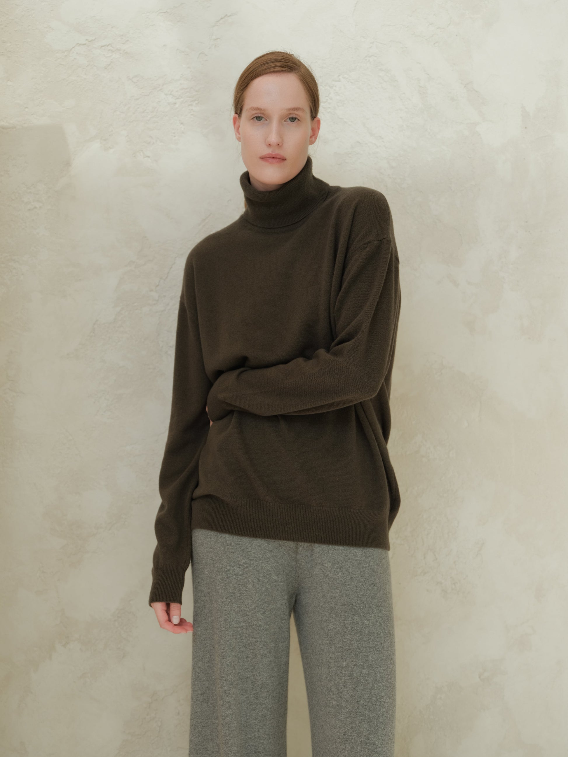 A timeless turtleneck sweater crafted in our soft cashmere mix, featuring a classic relaxed silhouette and a refined central detail on the back.