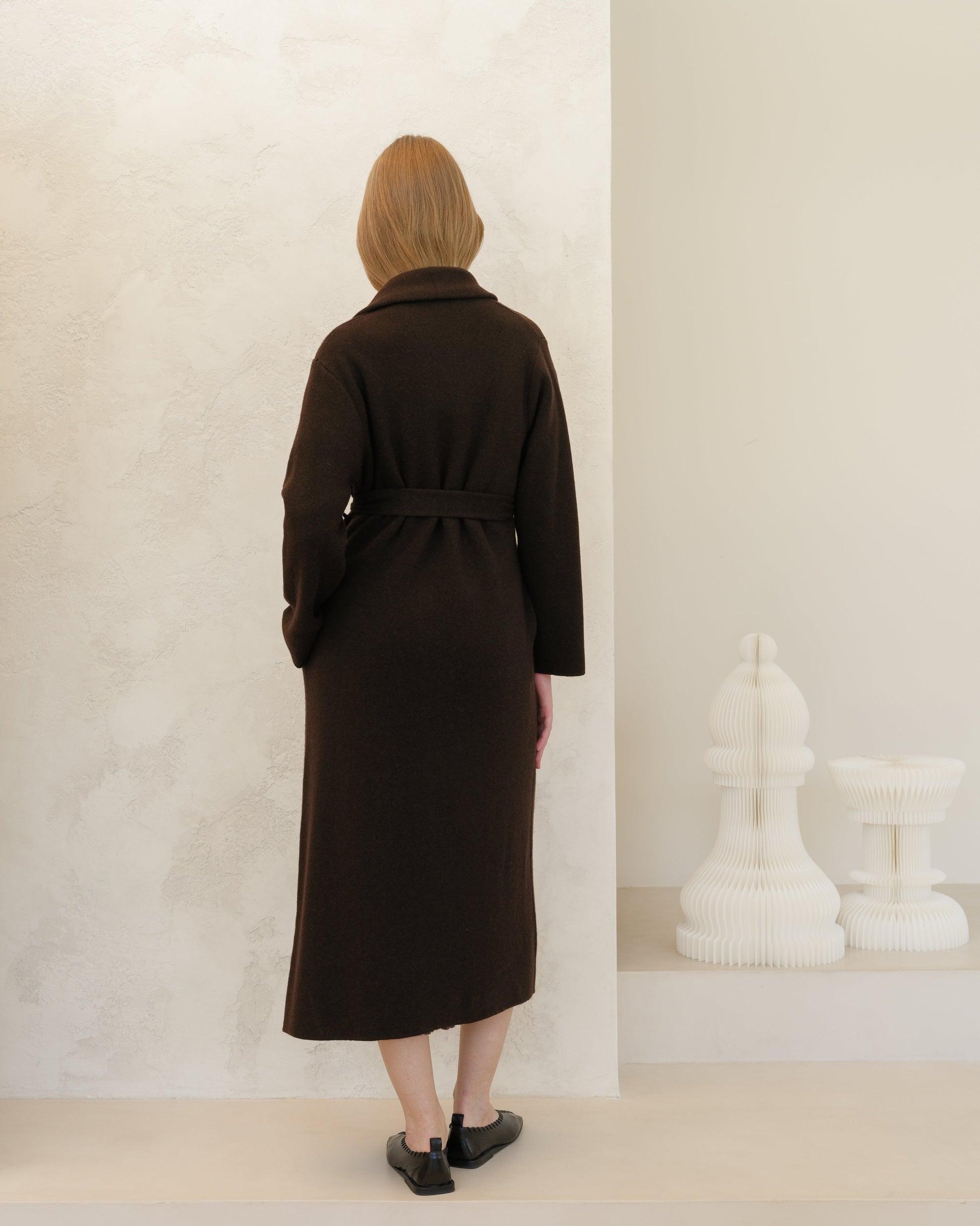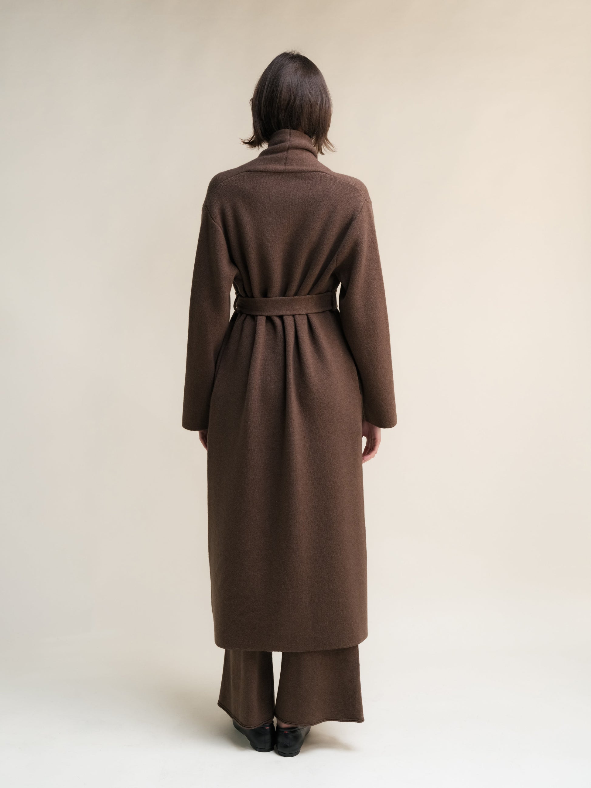 The adjustable belt allows for a personalized fit, while the deep brown hue evokes the grounded beauty of Tuscan earth.