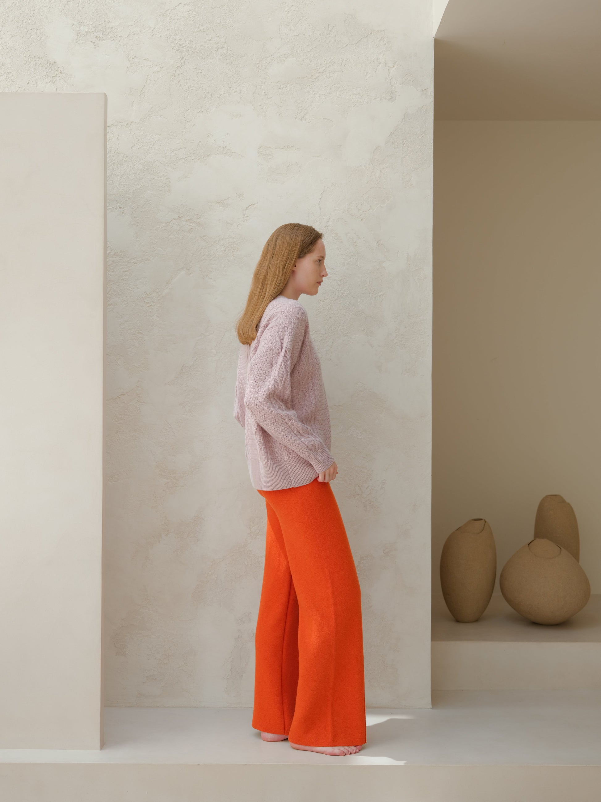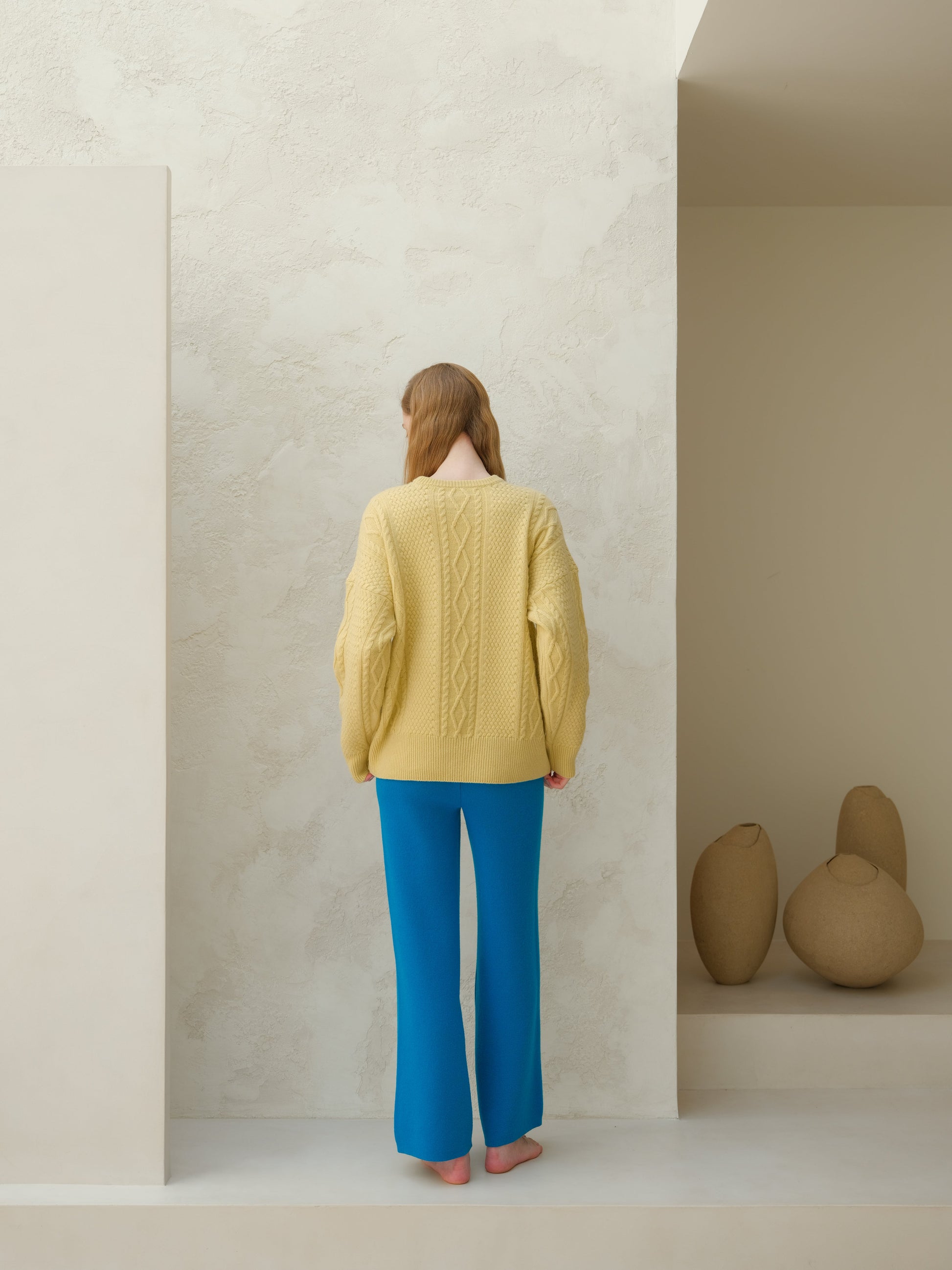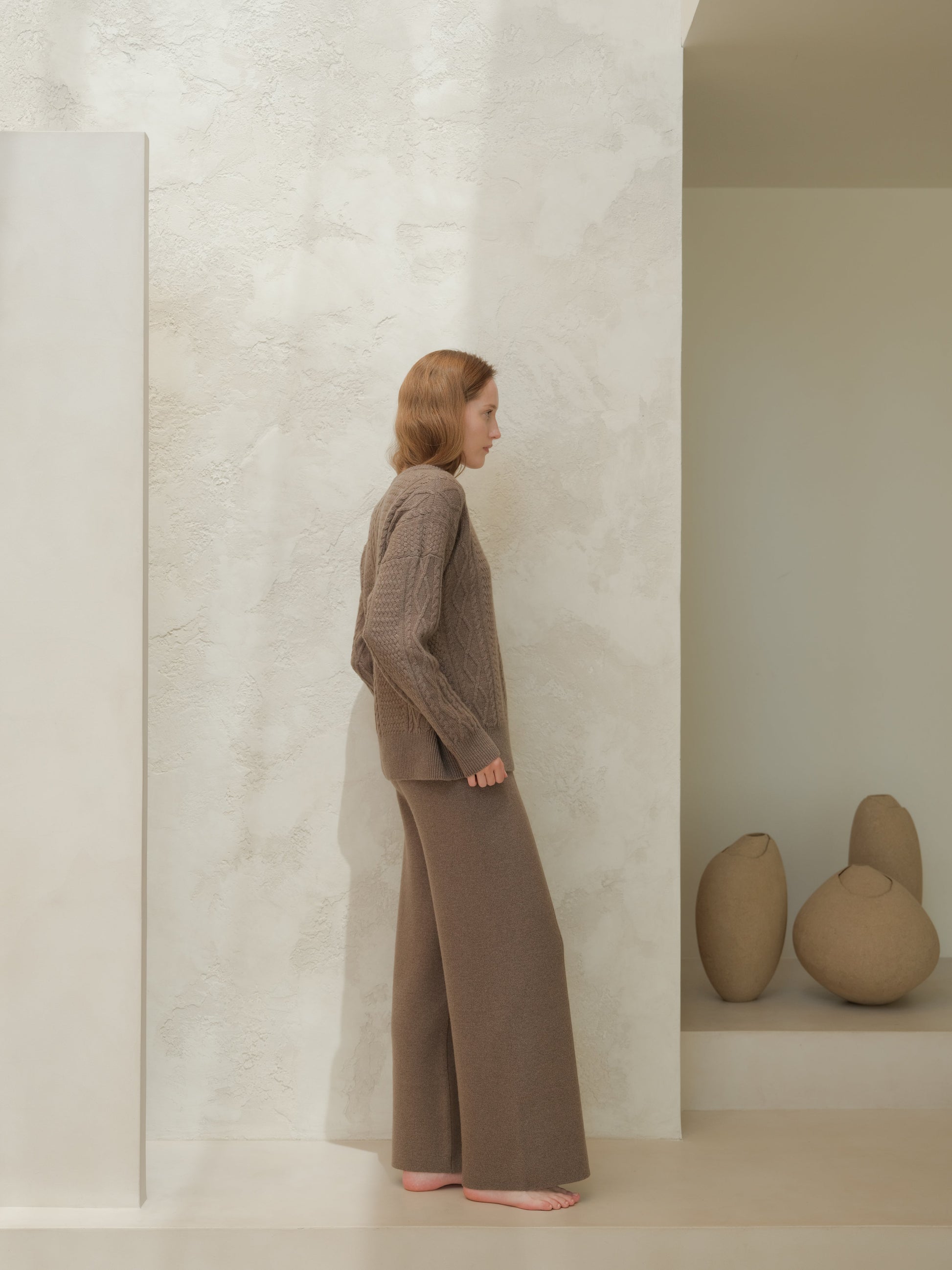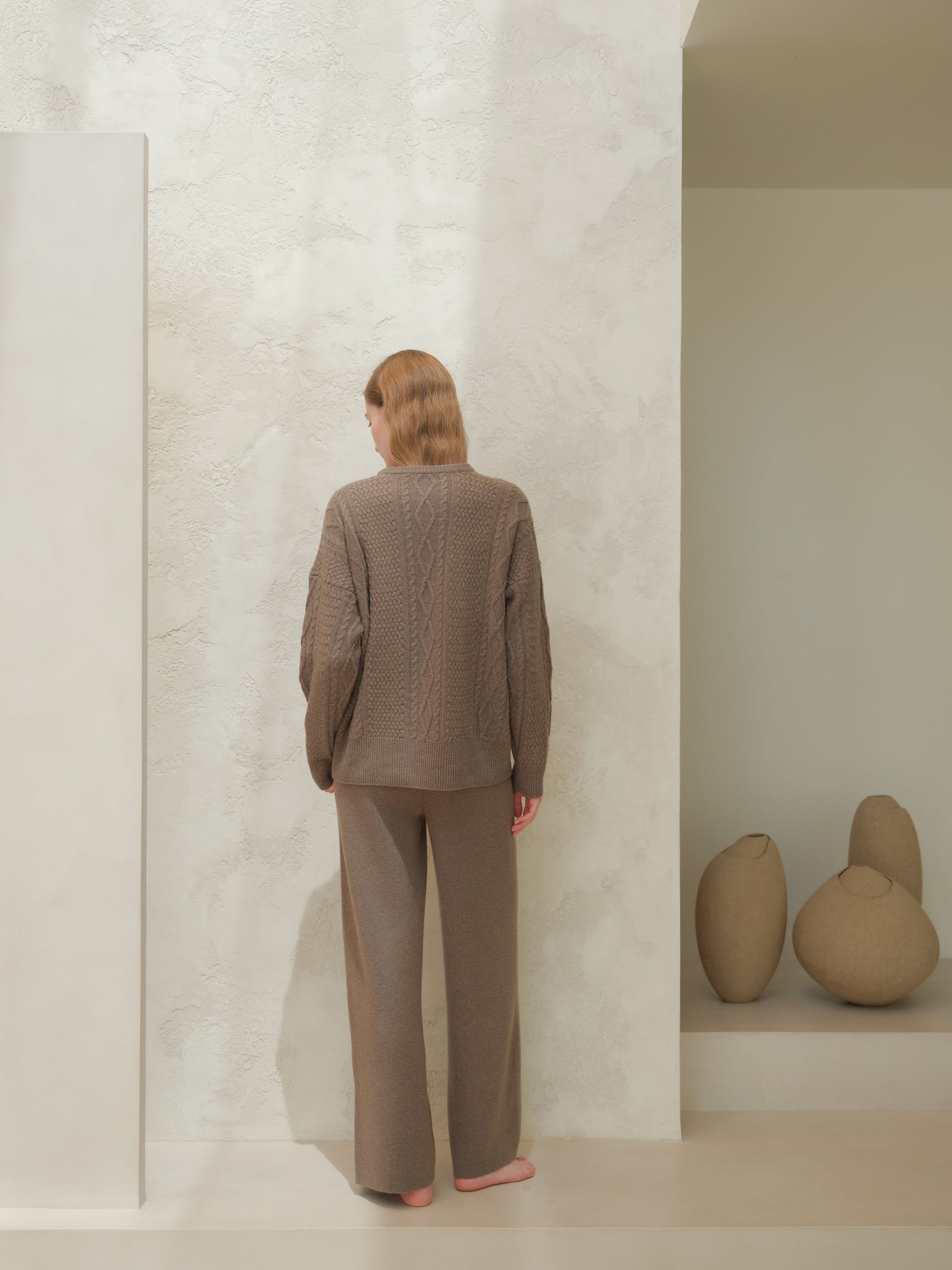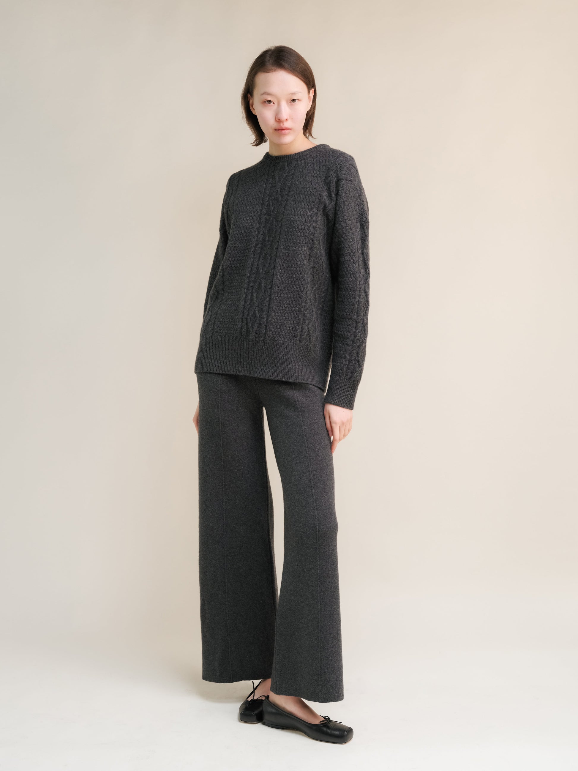 A sculpted crewneck sweater with a relaxed yet refined silhouette. Made in our cashmere mix yarn, it features all-over fisherman’s rib and dropped shoulders that create a soft, cocooning shape. A piece that brings together structure and comfort in perfect balance.