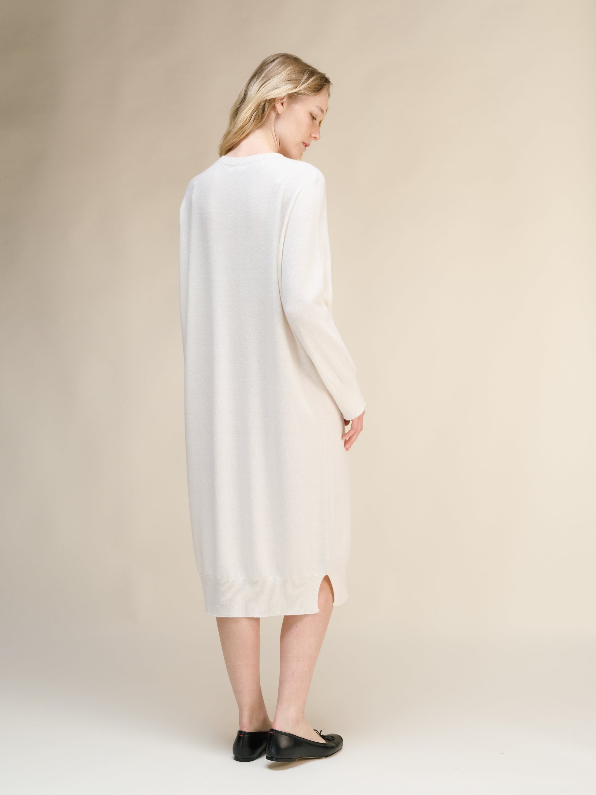 Our 3D-Knit midi dress combines modern craftsmanship with timeless elegance. Its minimalist design offers endless versatility, while the soft, flowing fit makes it an essential addition to a refined wardrobe. Perfect for transitioning through seasons with ease and comfort.
