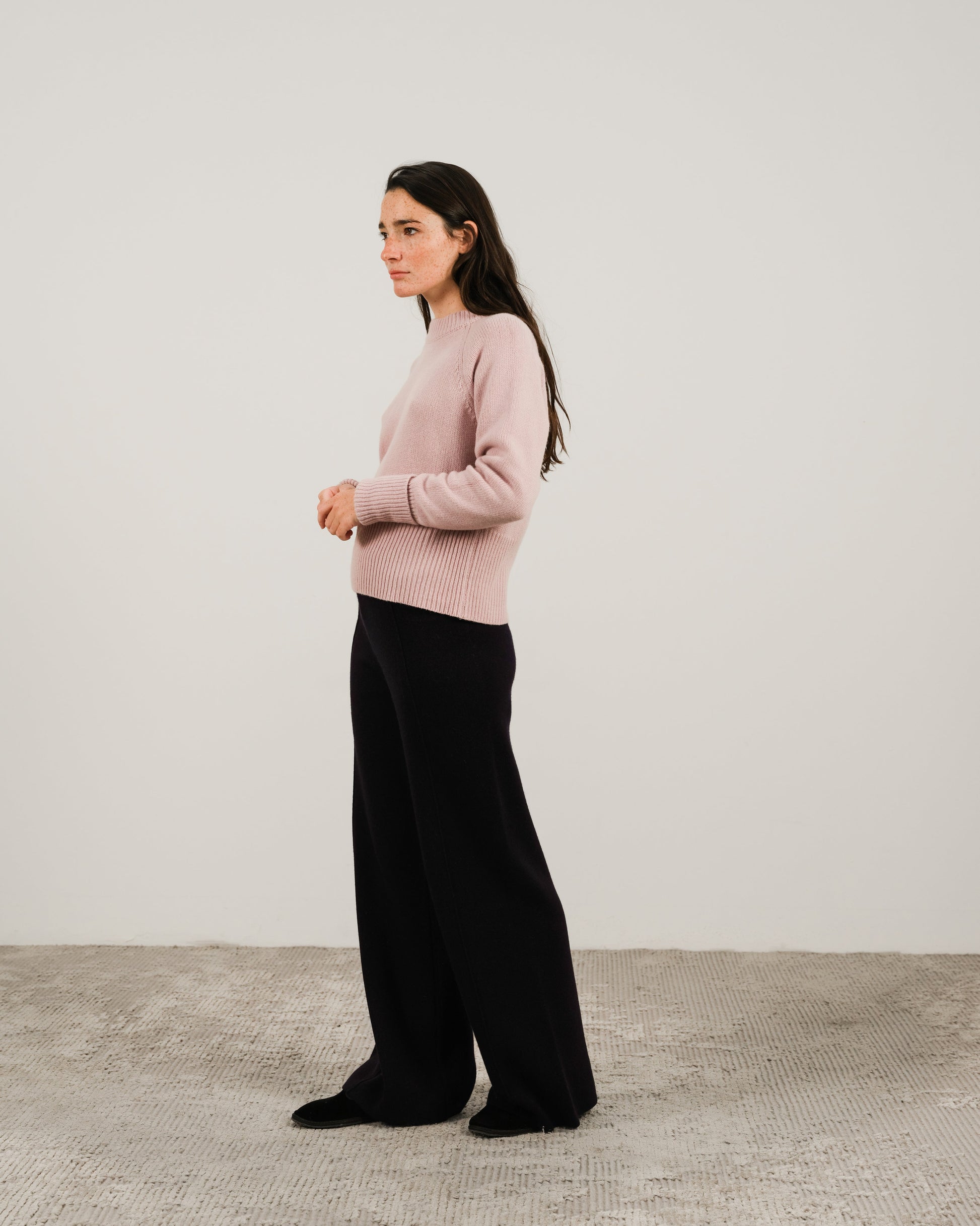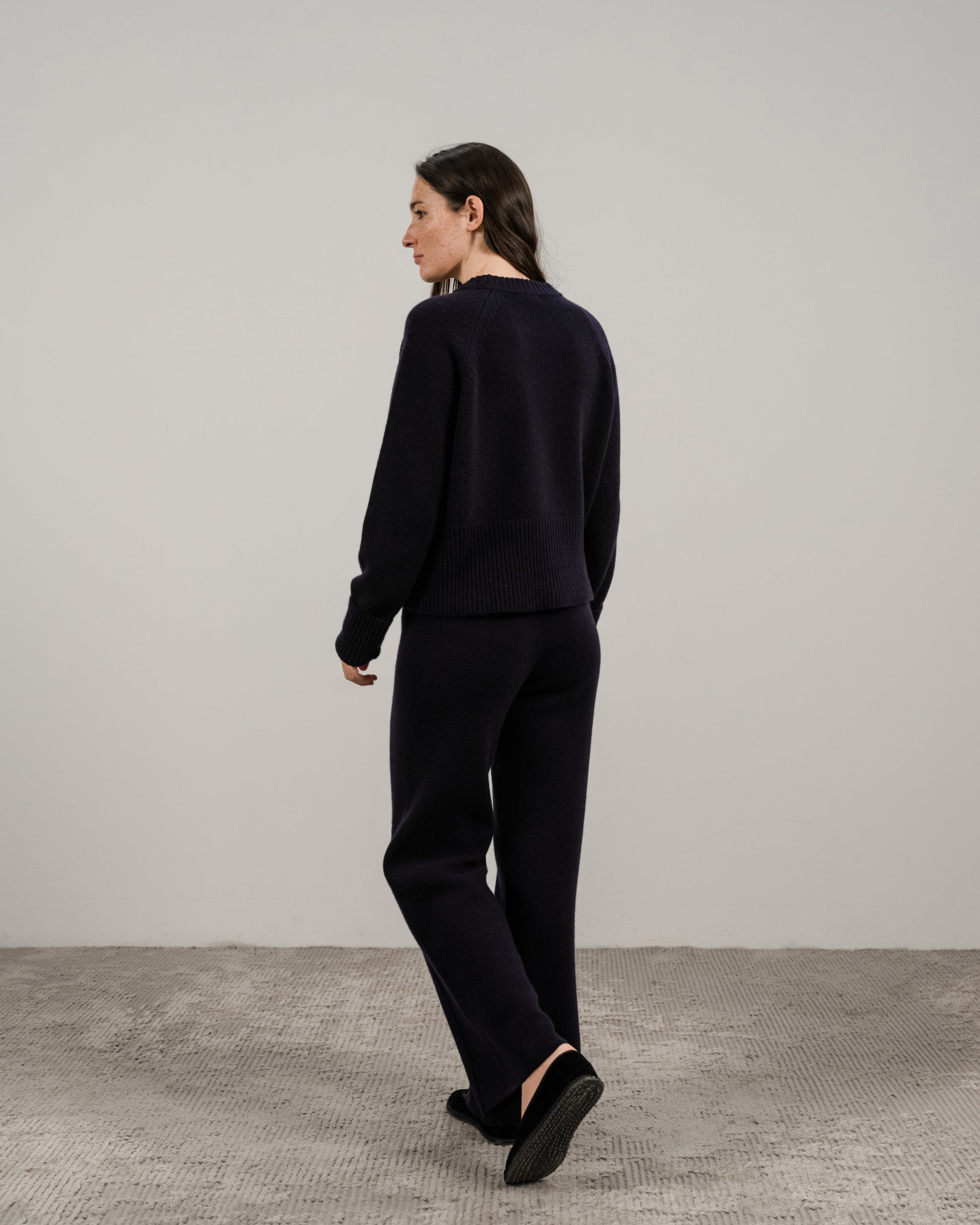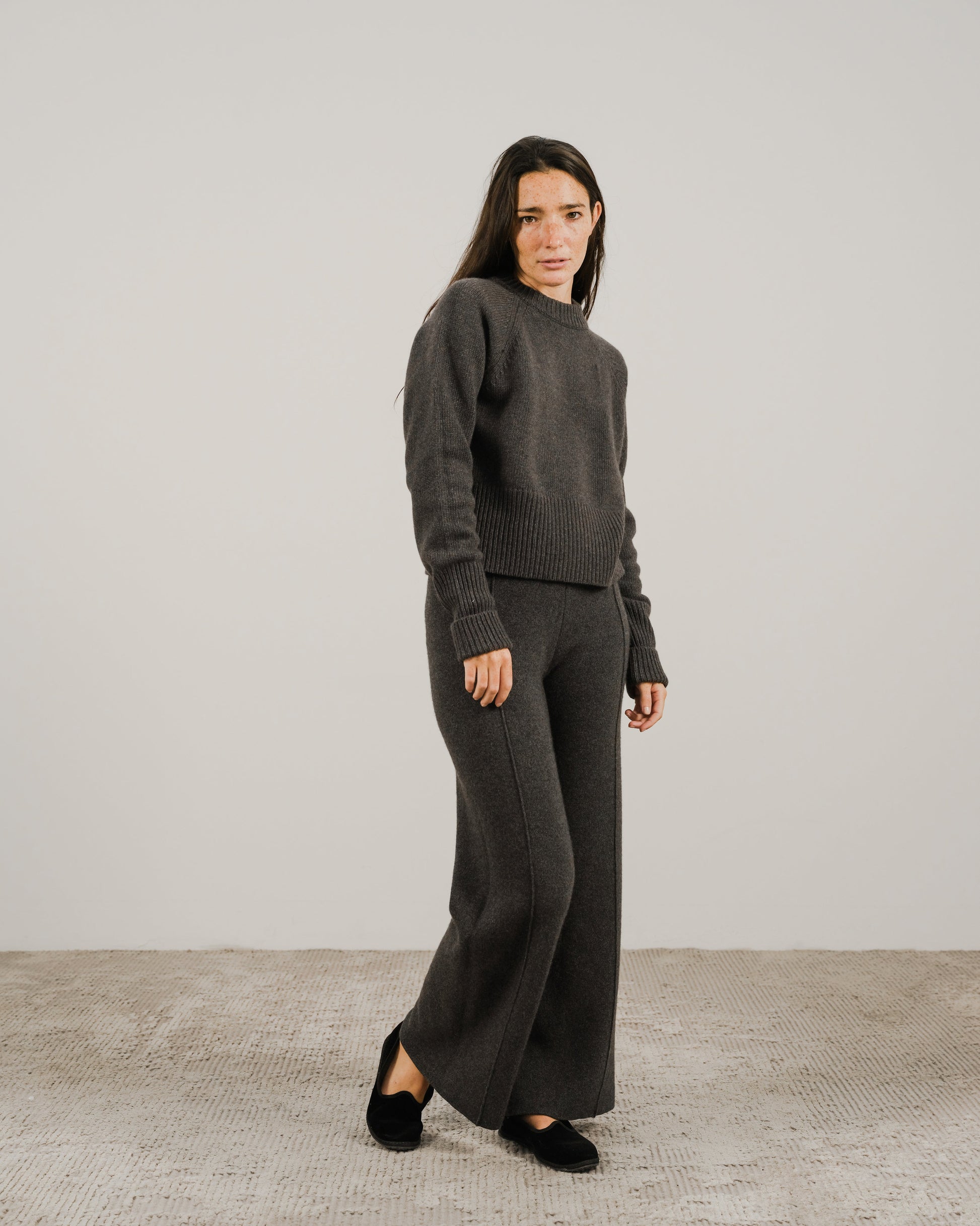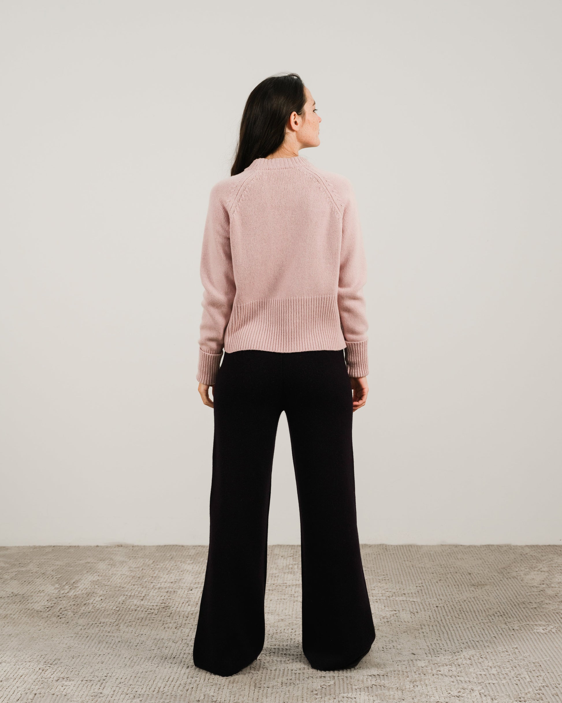 This stylish crewneck sweater features a slightly cropped body and elongated roll-up sleeves that create a slim, elegant shape.
