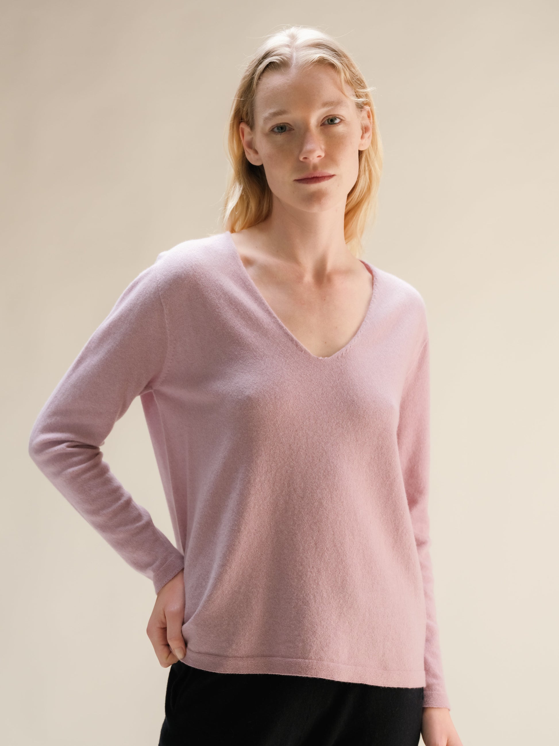 An essential V-neck sweater designed to elevate your everyday style. With a clean neckline and subtle finishing details, it merges timeless simplicity with modern craftsmanship—an ideal foundation for a refined wardrobe.