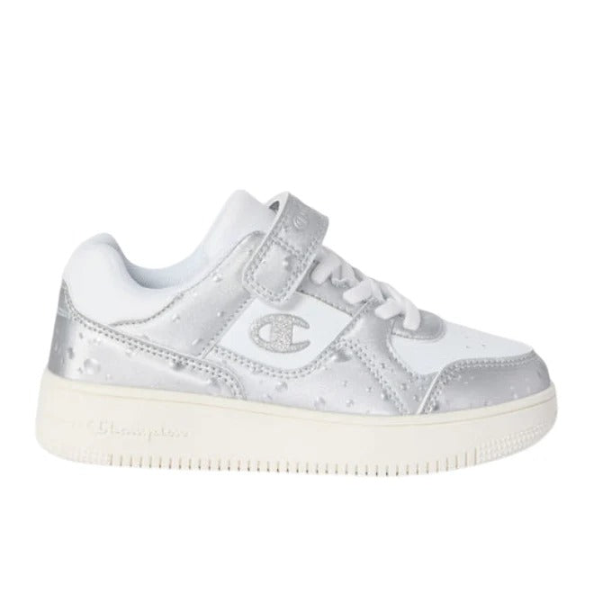 Scarpa bassa da bambina dal look sportivo-casual: presenta una tomaia in similpelle bianca con accenti argento, chiusura a strappo con lacci elastici per una calzata facile e sicura. La suola in gomma offre stabilità e supporto, mentre il design “bubble” e il logo laterale rendono il modello vivace e adatto all’uso quotidiano.