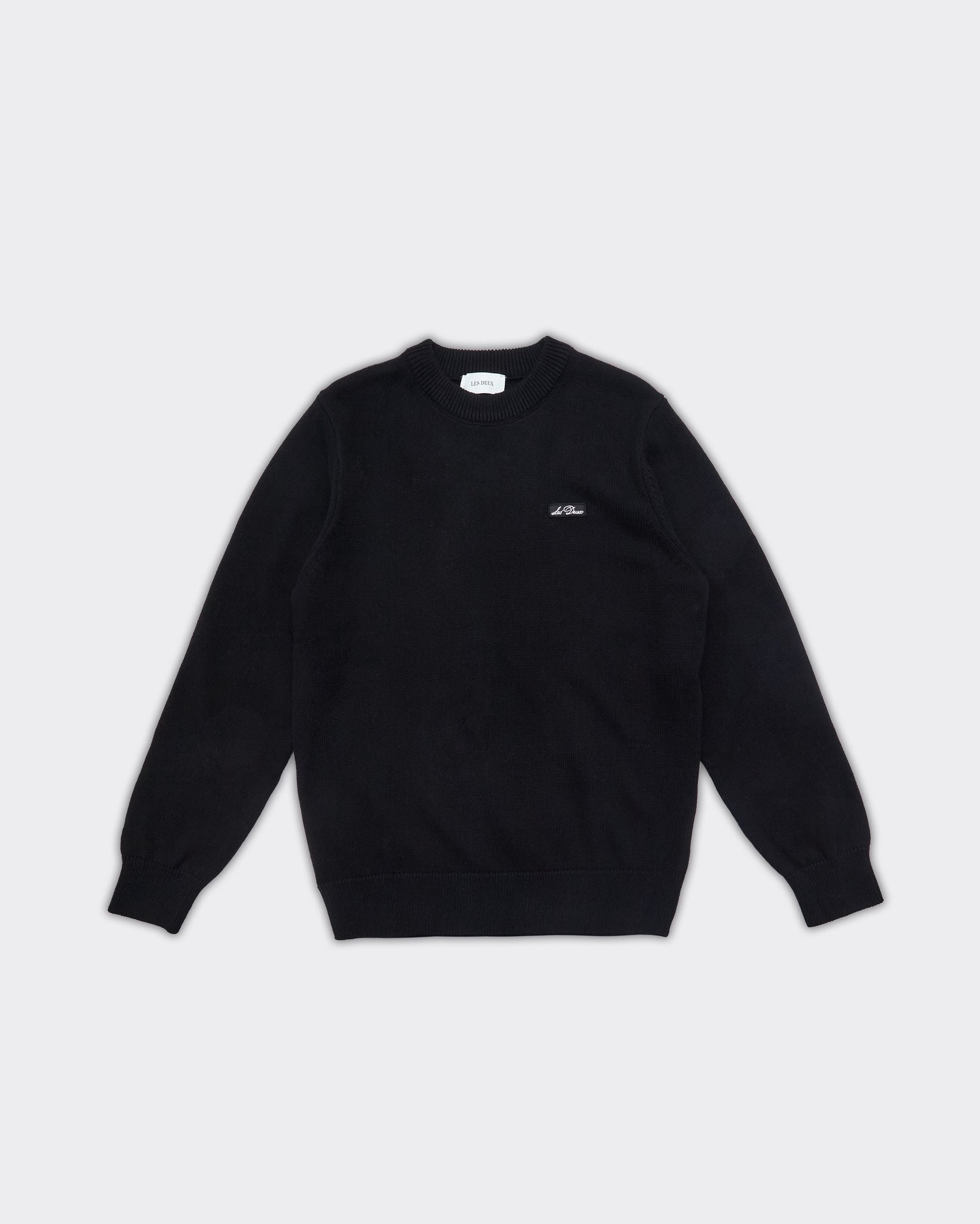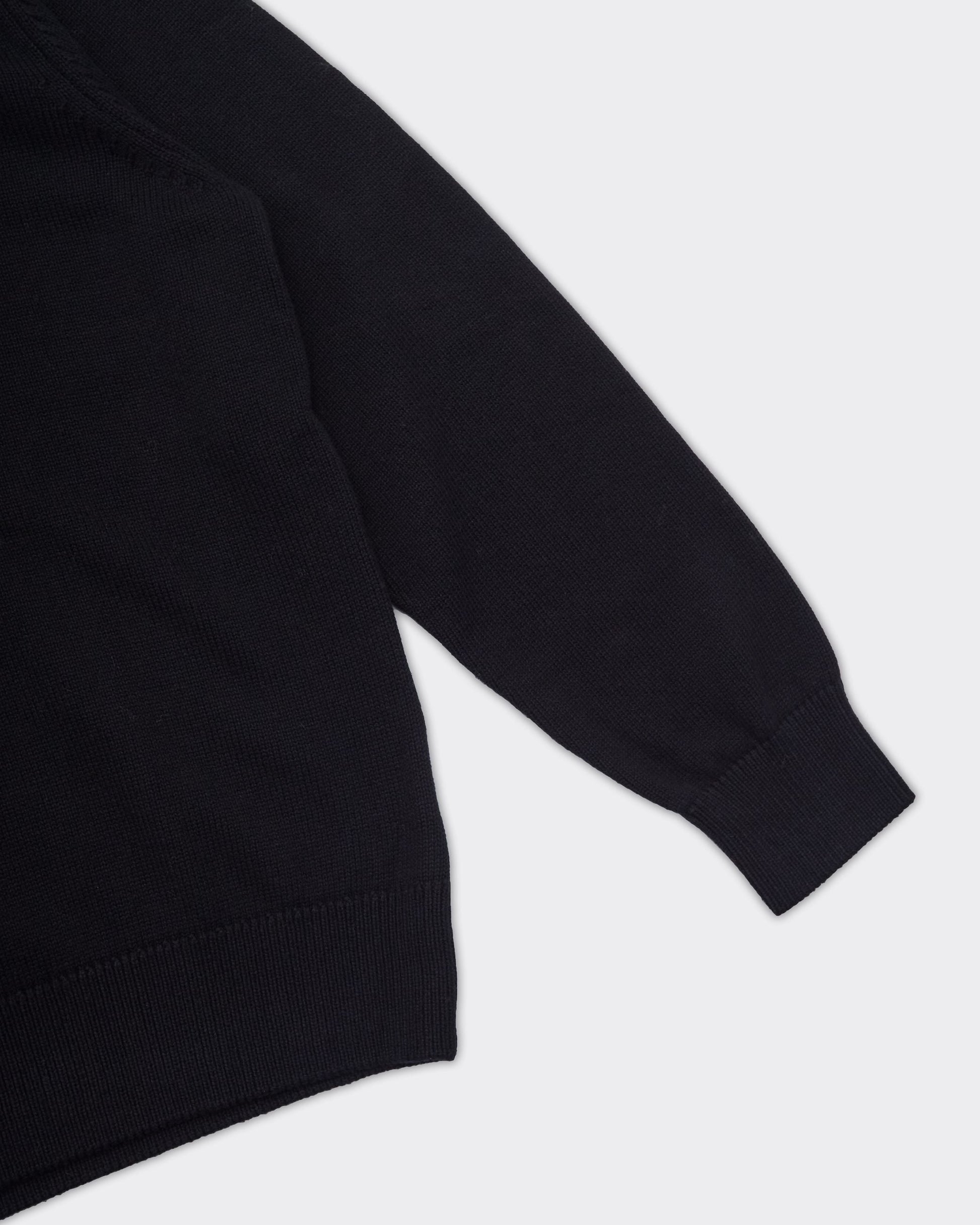 Colore nero, materiali di maglia visibili, logo ricamato sul petto.