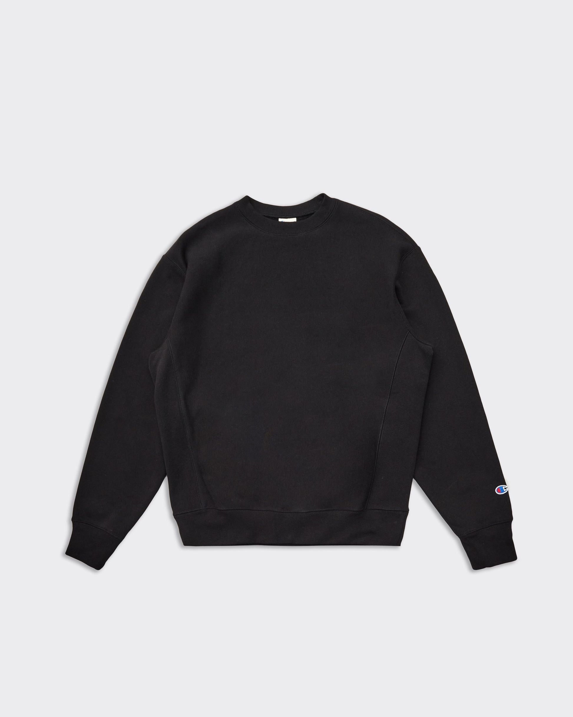 Felpa nera con girocollo e maniche lunghe. Ricamo sul polsino sinistro. Tessuto completamente nero senza ulteriori stampe visibili.