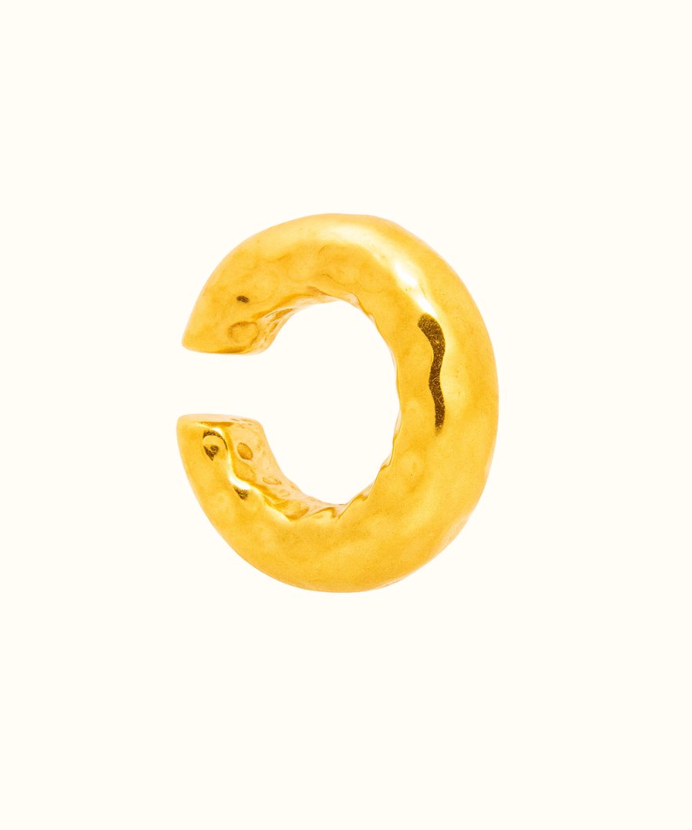 Aggiungi un tocco deciso e contemporaneo al tuo look con l’ear cuff Onda. Realizzato in acciaio inossidabile placcato oro, questo accessorio presenta una texture martellata che riflette elegantemente la luce, creando un effetto dinamico e sofisticato. Facile da indossare grazie al suo design, si adatta perfettamente all'orecchio senza bisogno di fori. Ideale da solo o abbinato ad altri ear cuff per uno stile audace e moderno.