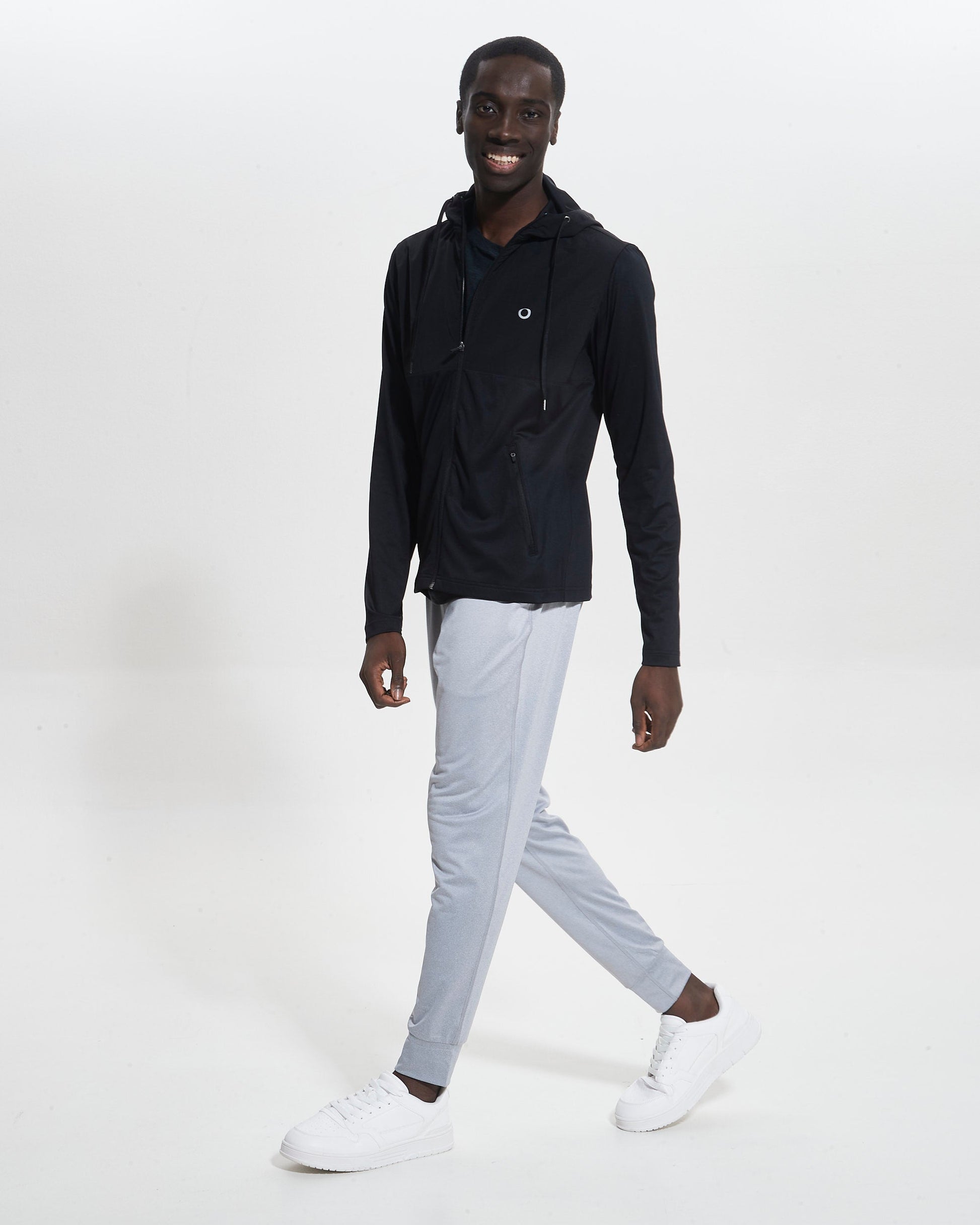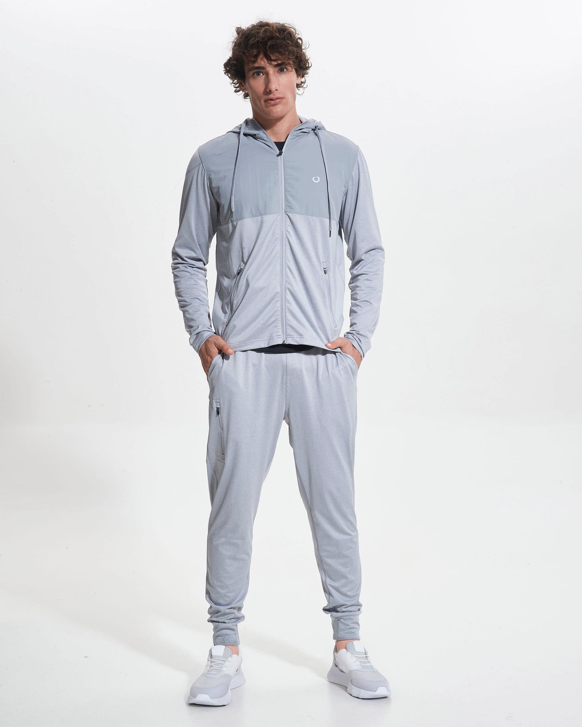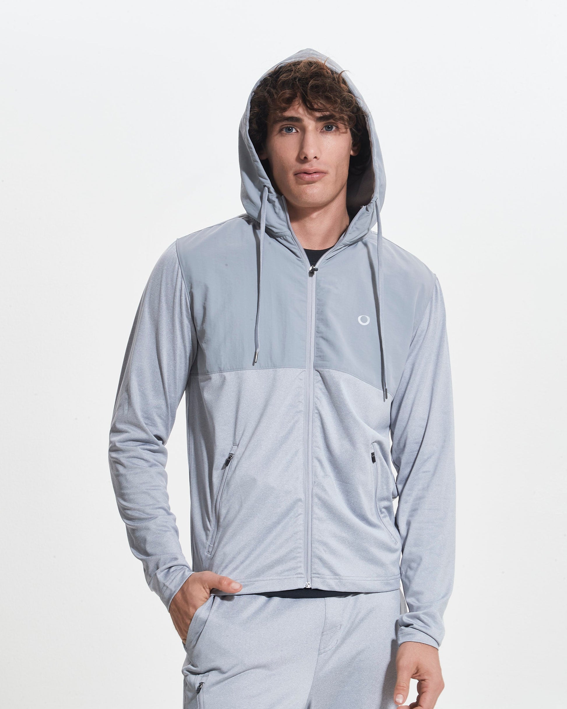 The Evolution Jacket is designed for ultimate comfort and outdoor functionality, blending soft, stretchy knit fabric with durable nylon panels. Its moisture-wicking properties, adjustable hood, and secure zippered pockets make it perfect for both training sessions, running and everyday activity, ensuring you stay comfortable and equipped.