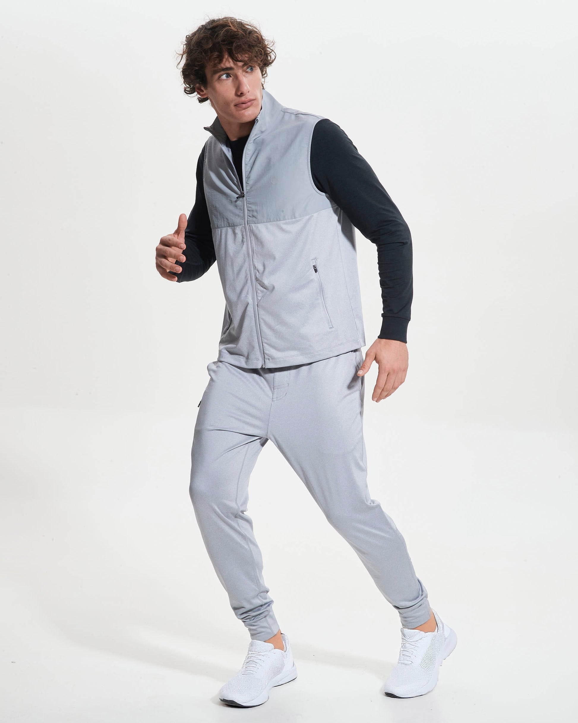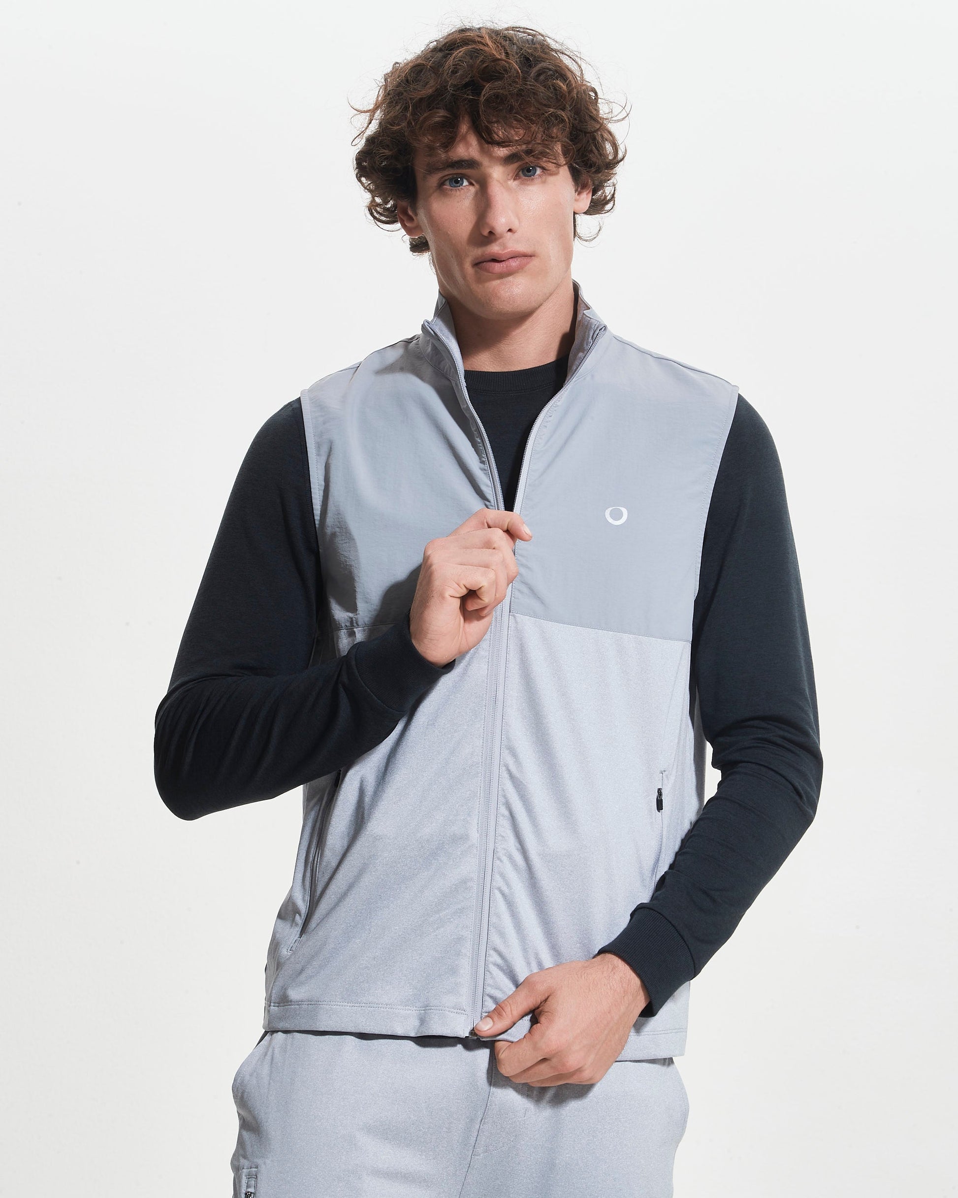 The Evolution Vest features our advanced 88% recycled stretch fabric and a durable woven overlay for enhanced weather resistance. With its moisture-wicking properties and secure-zip hand pockets, this vest is perfect for everyday and every activity.