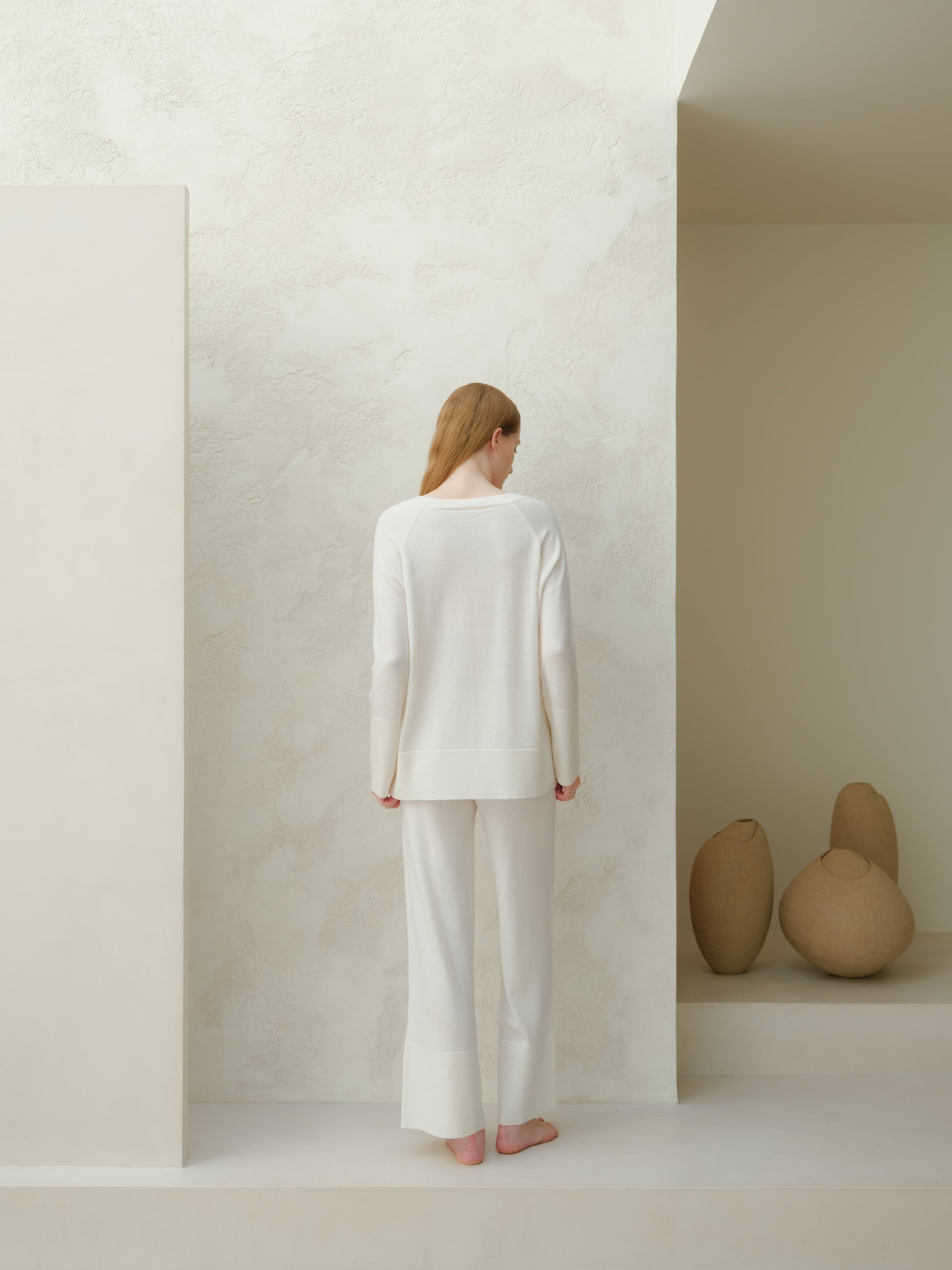 This relaxed V-neck sweater is knitted in 100% extrafine merino wool (Cashwool®), offering light warmth and fluid movement.