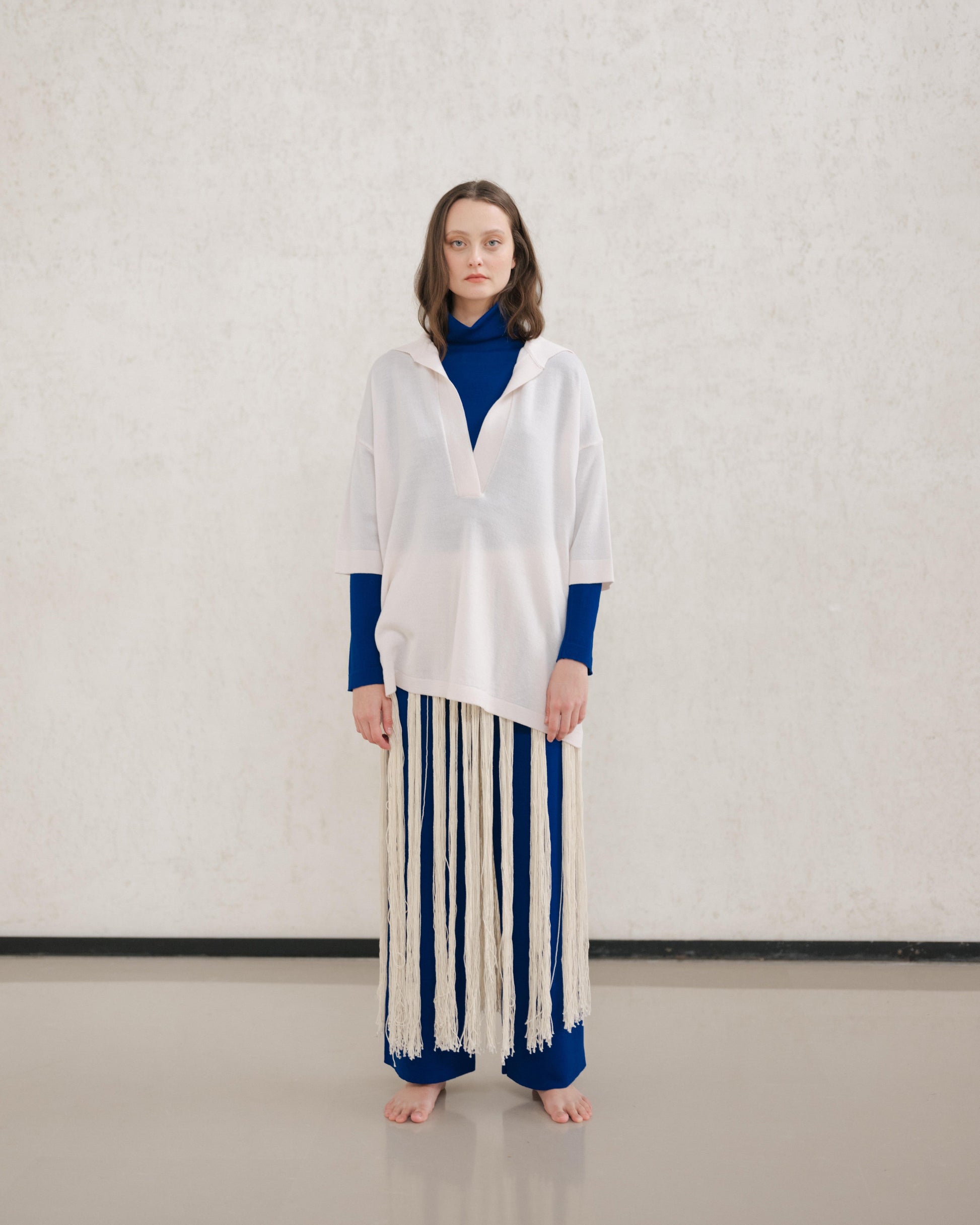 This maxi polo is crafted in 100% extrafine merino wool (Cashwool®), offering a refined drape and unmatched softness.