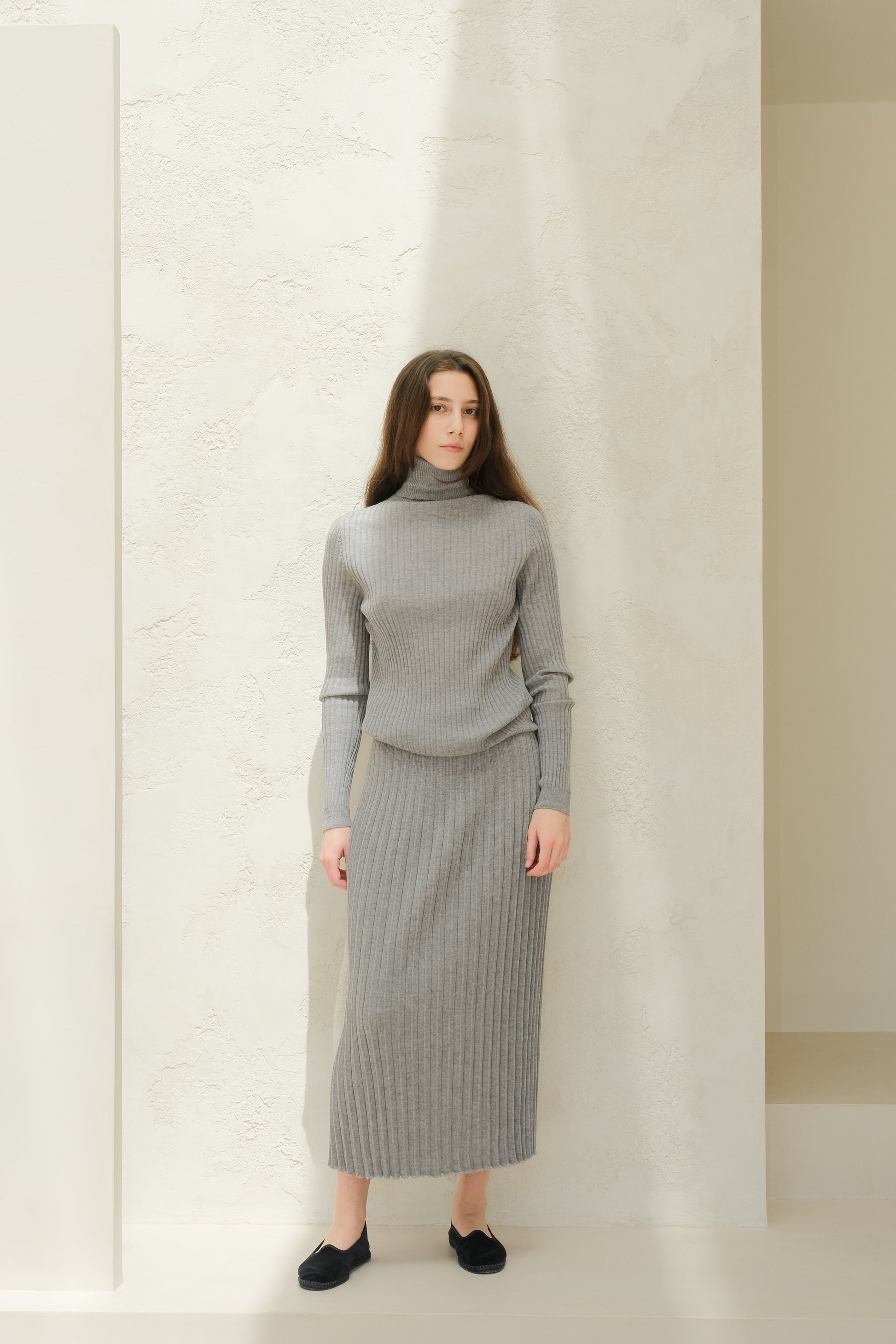 This plissé skirt is knitted in 3D using 100% extrafine merino wool (Cashwool®).