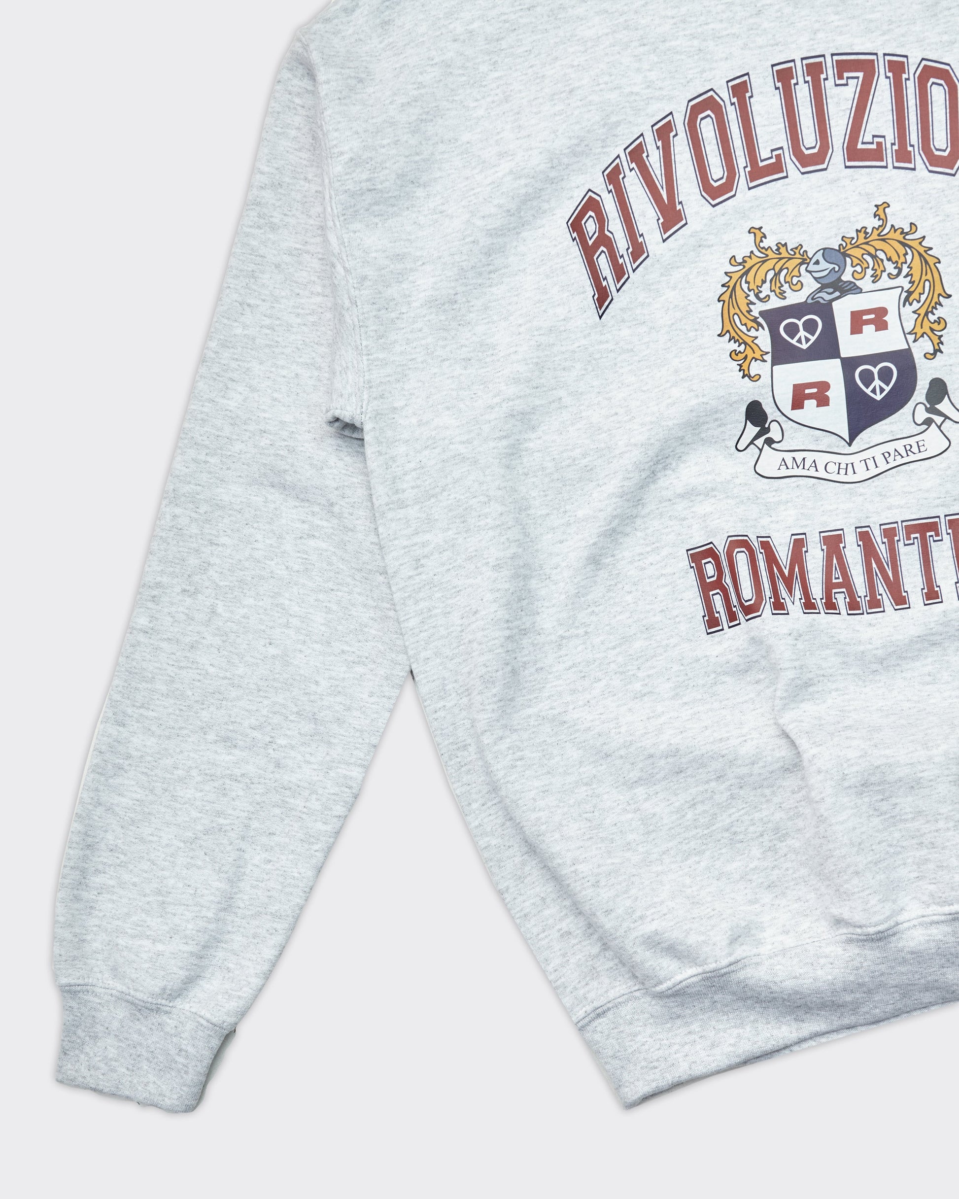 Felpa girocollo, stampa sul fronte, vita e polsini elasticizzati, veste regolare.