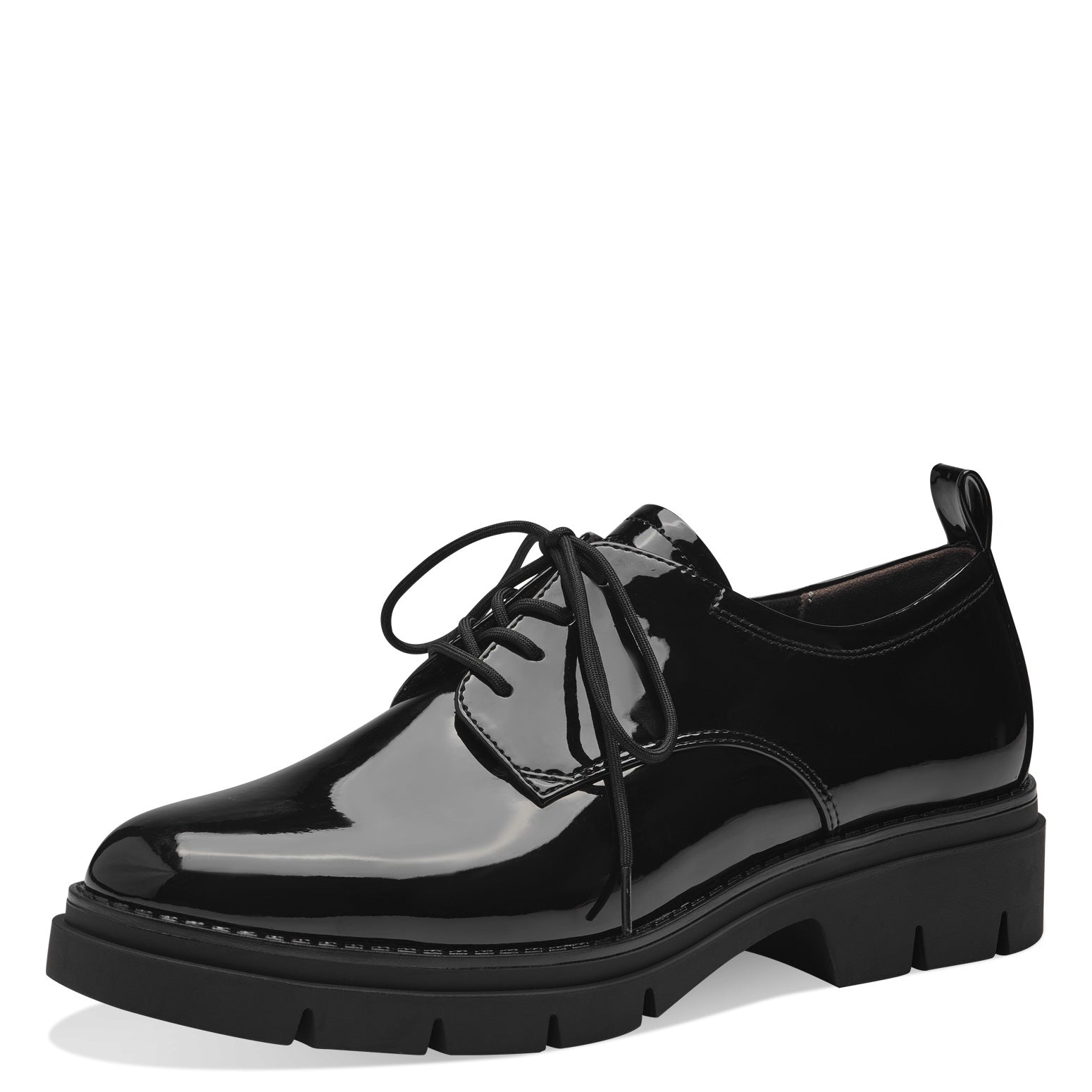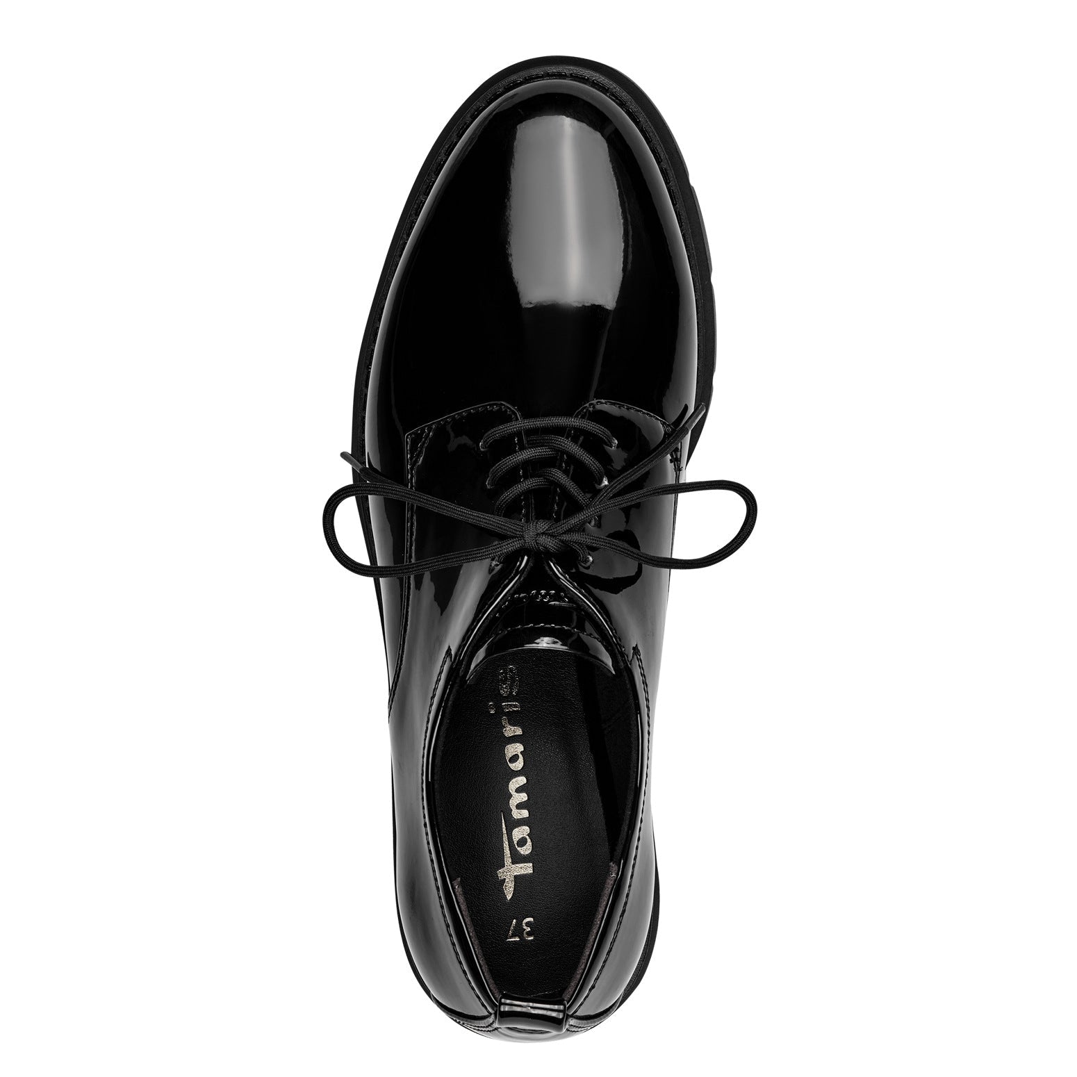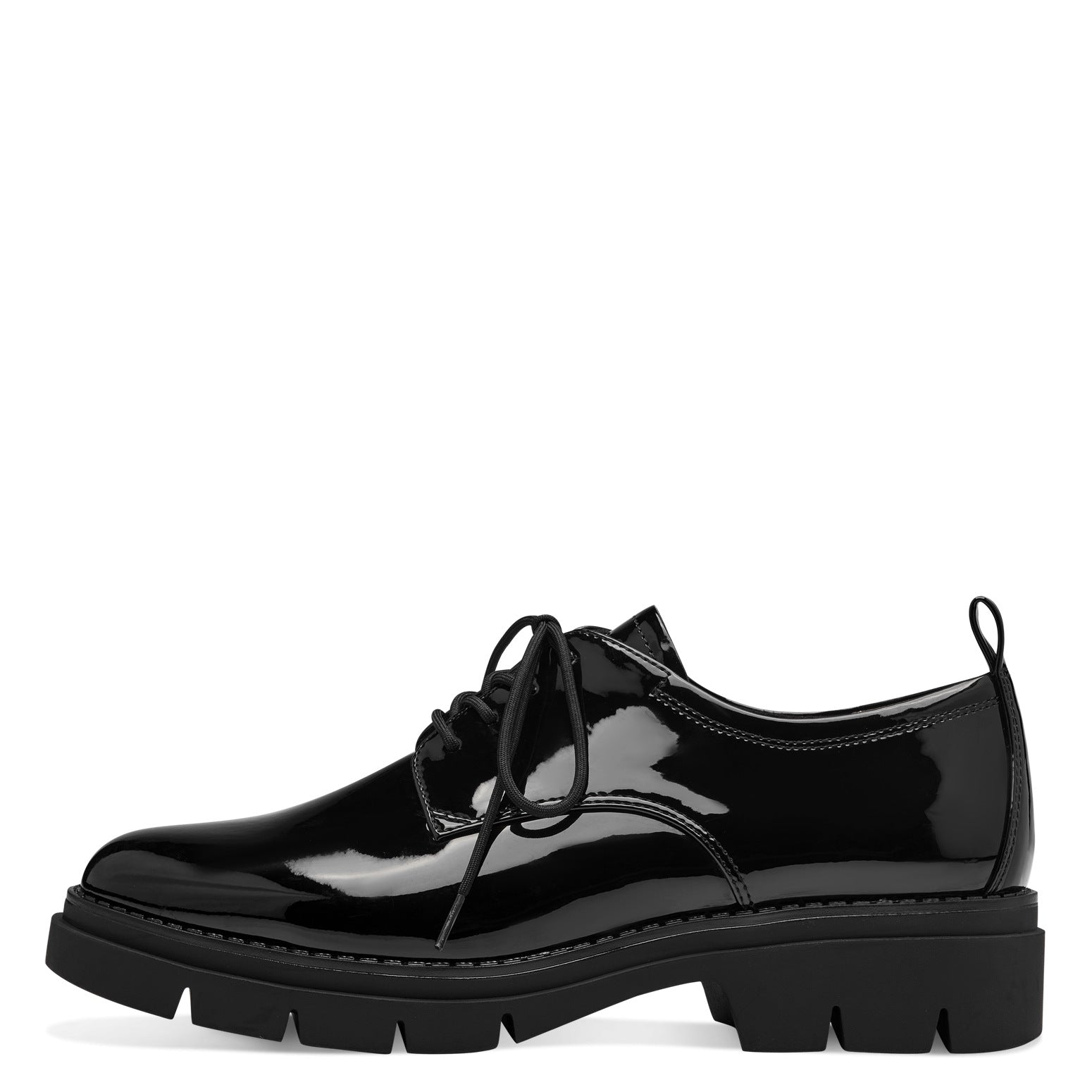 Francesina vegana nera lucida con sottopiede in morbido memory foam.