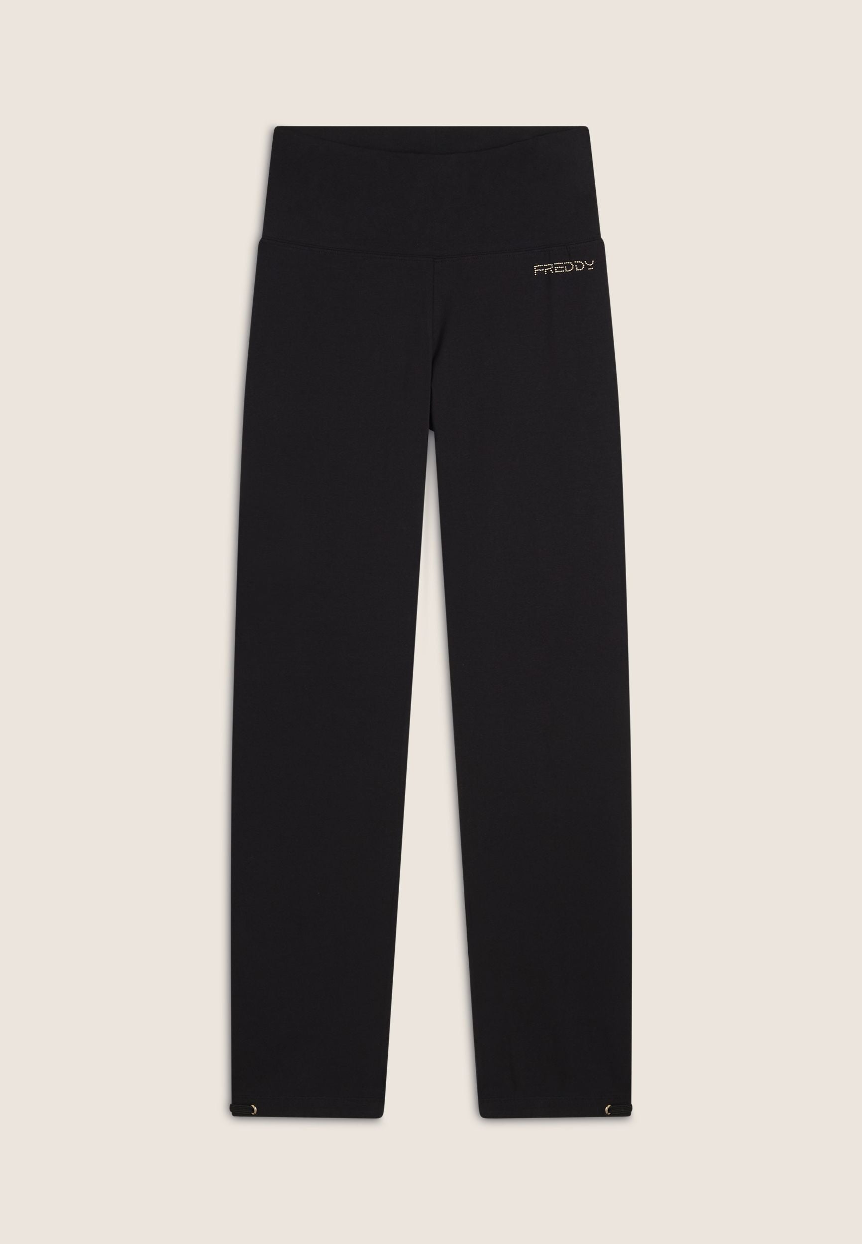Pantaloni sportivi in Heavy Jersey Stretch con vita regular e fondo regolabile tramite coulisse. La linea straight e il logo FREDDY con perline dorate sul fianco sinistro completano il design.