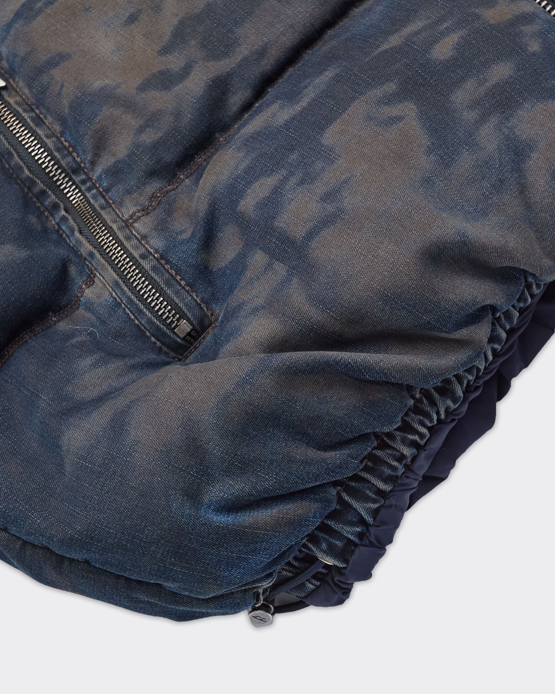 Questa giacca da uomo imbottita e trapuntata è realizzata in denim: pilastro del design Diesel. Caratterizzato dalla classica estetica destroyed, il tessuto è leggero, trattato al laser e lavato per creare un motivo camouflage effetto dirt. Calda e confortevole grazie al colletto alto con fodera morbida e alle coulisse sui polsi e sul fondo.