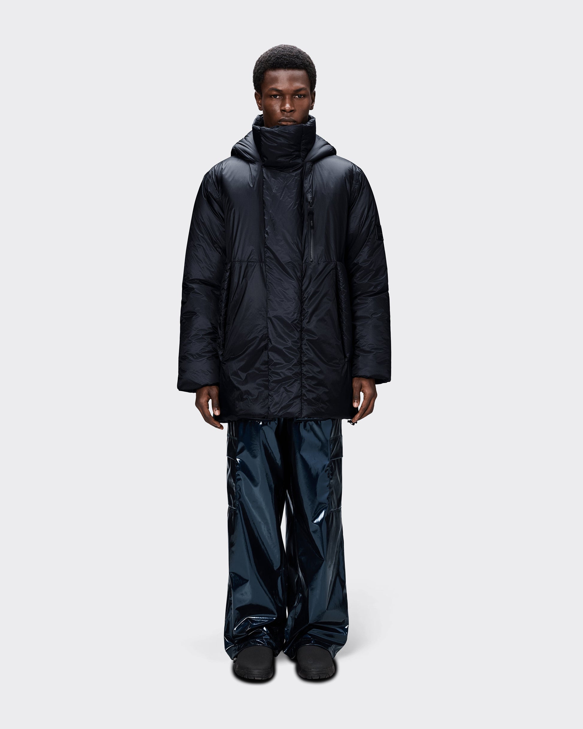 Il modello include un layer esterno comodo in nylon-ripstop. Questa giacca lunga e comoda è completata da un'estetica semitrasparente e una morbida mano opaca.