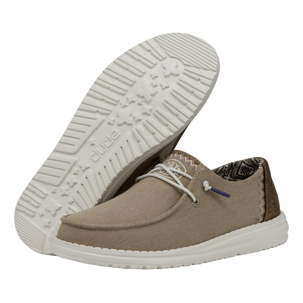 Le Hey Dude WENDY TEMPE da donna sono realizzate con una tomaia in tessuto altamente resistente e traspirante, e con un originale dettaglio in pelle sintetica sul tallone. Hanno solette in schiuma e suole in schiuma EVA.