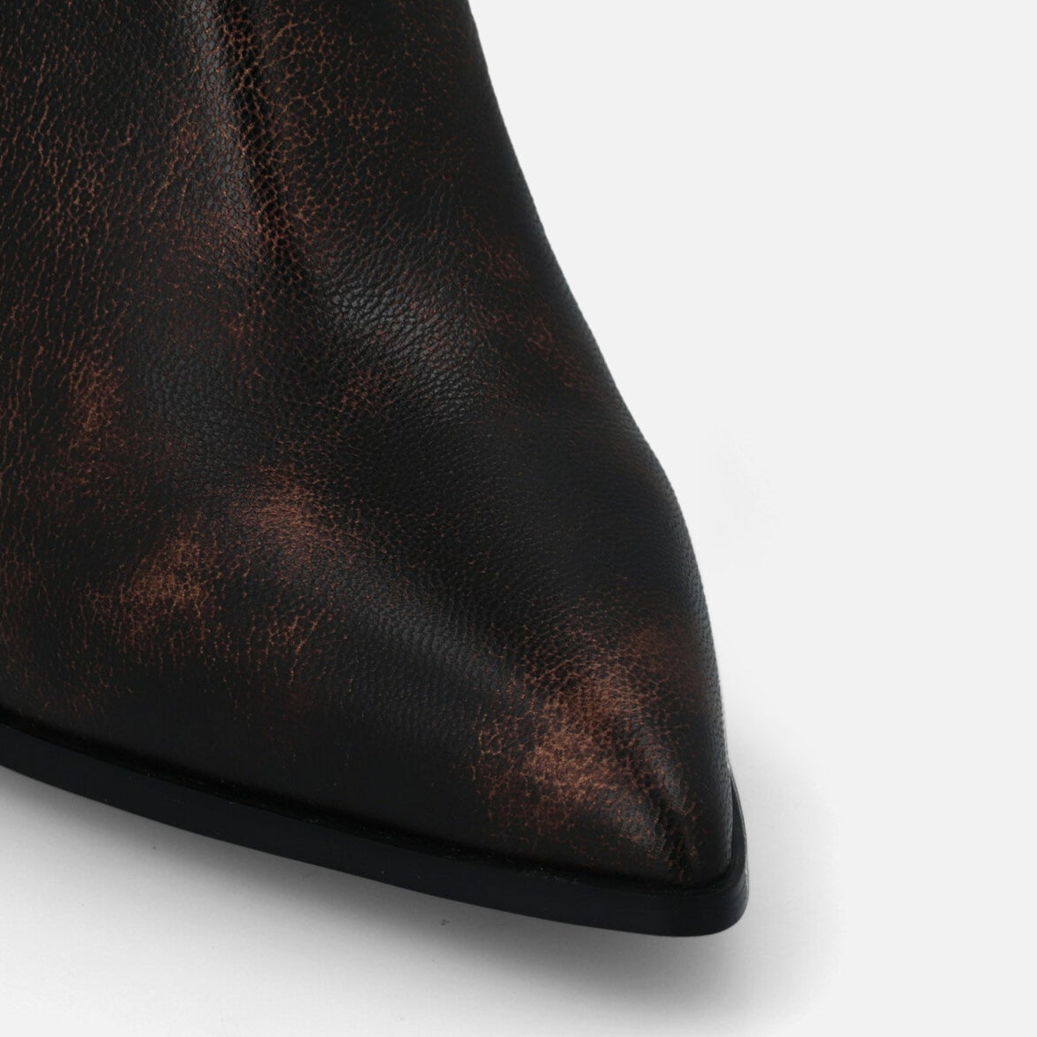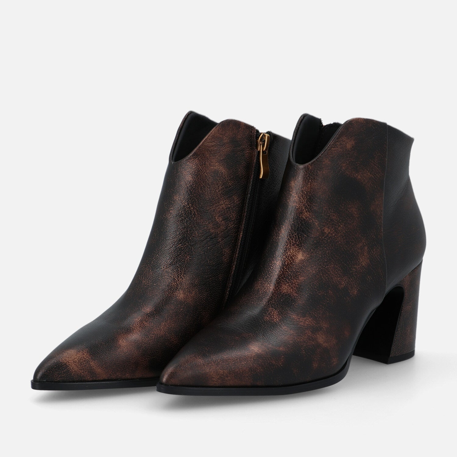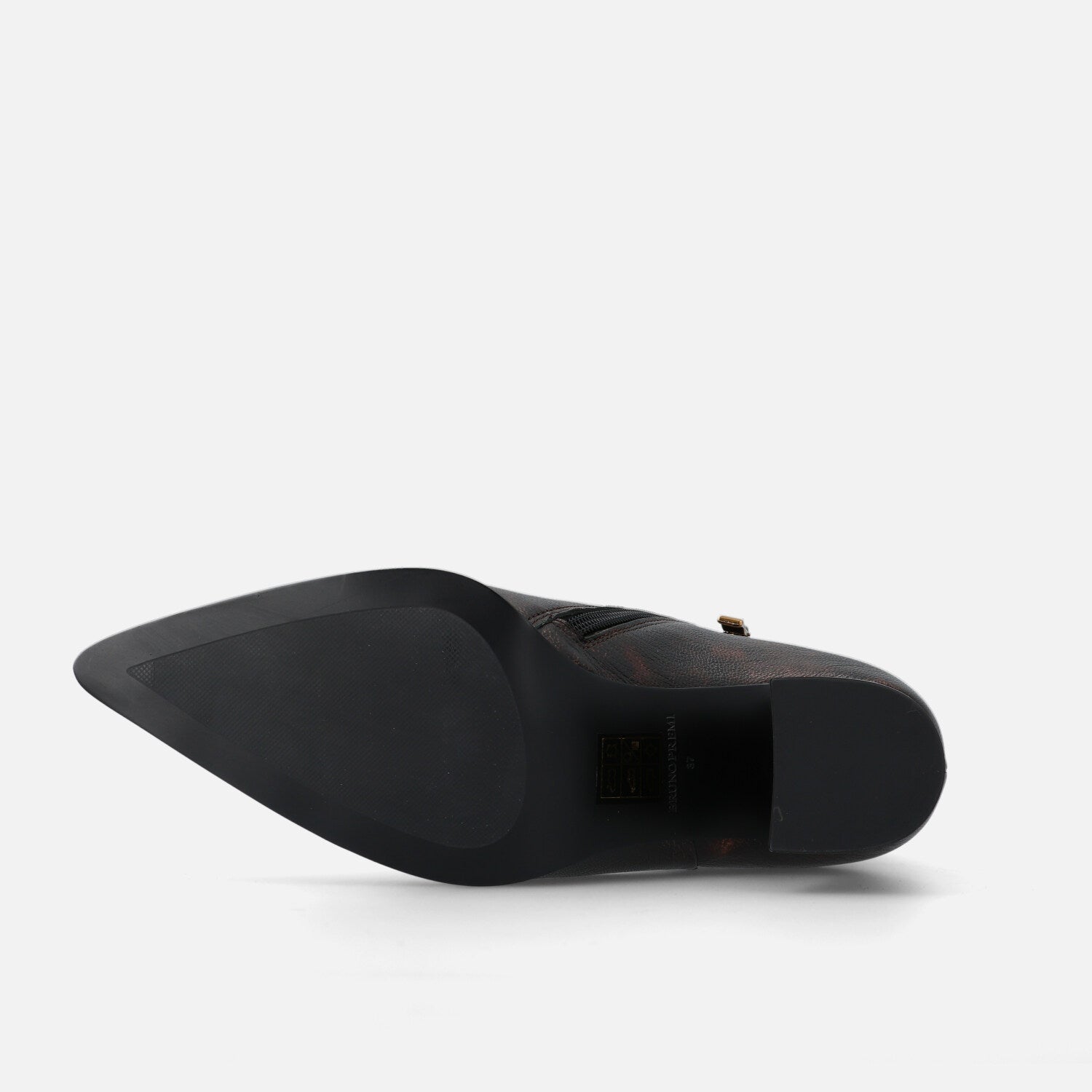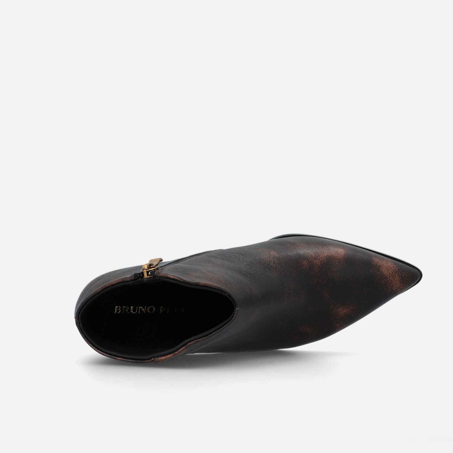 Ilo Pan è un tronchetto in pelle che esprime un’eleganza sofisticata e grintosa. La silhouette è affusolata, con punta sfilata e una linea asciutta che slancia la figura. Il design è essenziale ma d’impatto, privo di cuciture o accessori visibili, lasciando che sia la finitura metallizzata realizzata a mano a catturare l’attenzione. Il tacco largo e svasato aggiunge un tocco contemporaneo e assicura stabilità, rendendo il modello perfetto per l’uso quotidiano o per completare outfit eleganti con un accento audace e moderno.