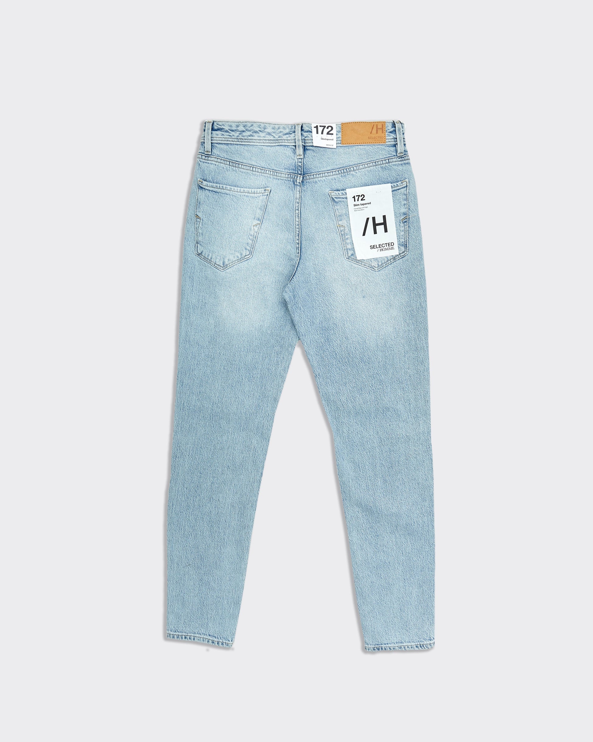 Jeans five pocket con chiusura con bottone e zip, passanti in vita, slim fit.