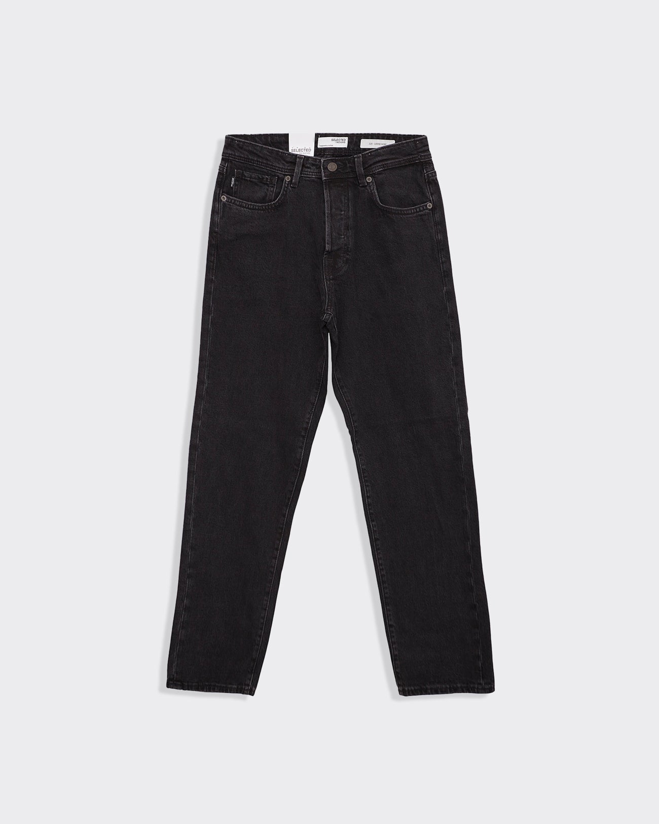 Jeans cinque tasche con gamba dritta, chiusura a bottone con passanti in vita, loose fit.