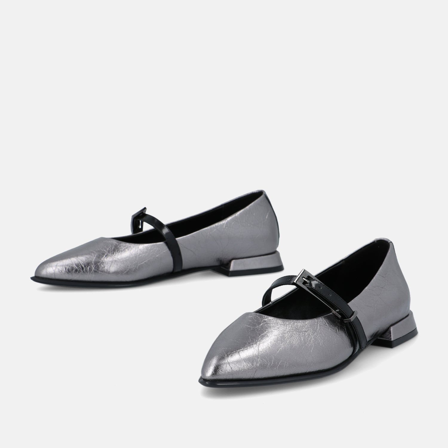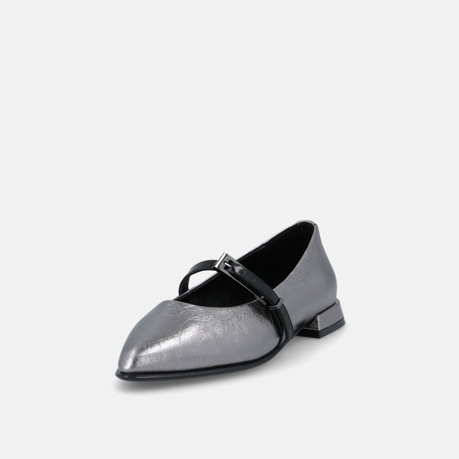 Le ballerine Lim Argot reinterpretano con carattere contemporaneo un’icona senza tempo. Realizzate in pelle laminata dalla finitura metallica e sofisticata, conquistano al primo sguardo grazie alla punta affusolata e al delicato cinturino che avvolge il piede con femminile eleganza. Il tacco basso e geometrico dona stabilità e un tocco moderno, perfetto per accompagnare ogni momento della giornata con naturale disinvoltura.