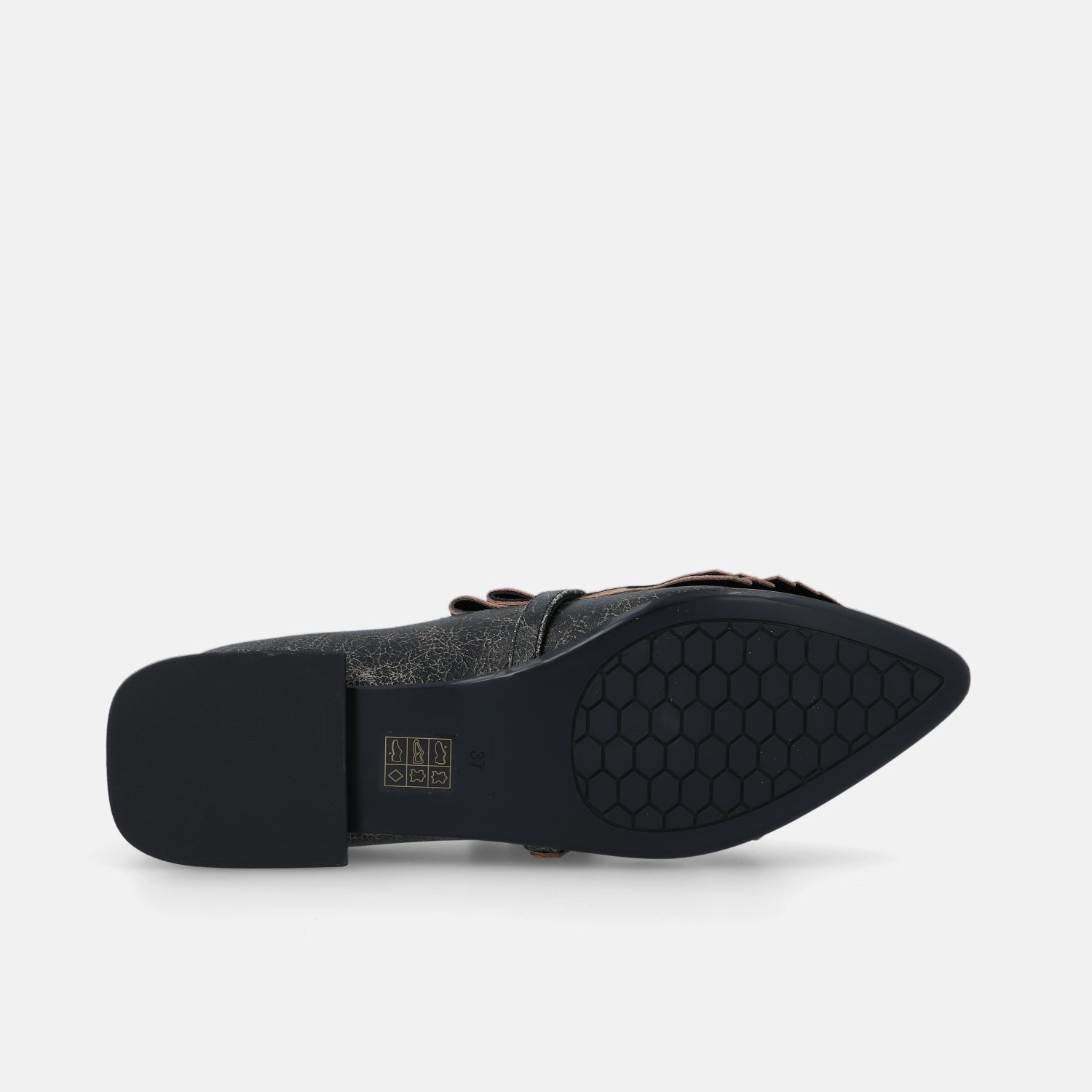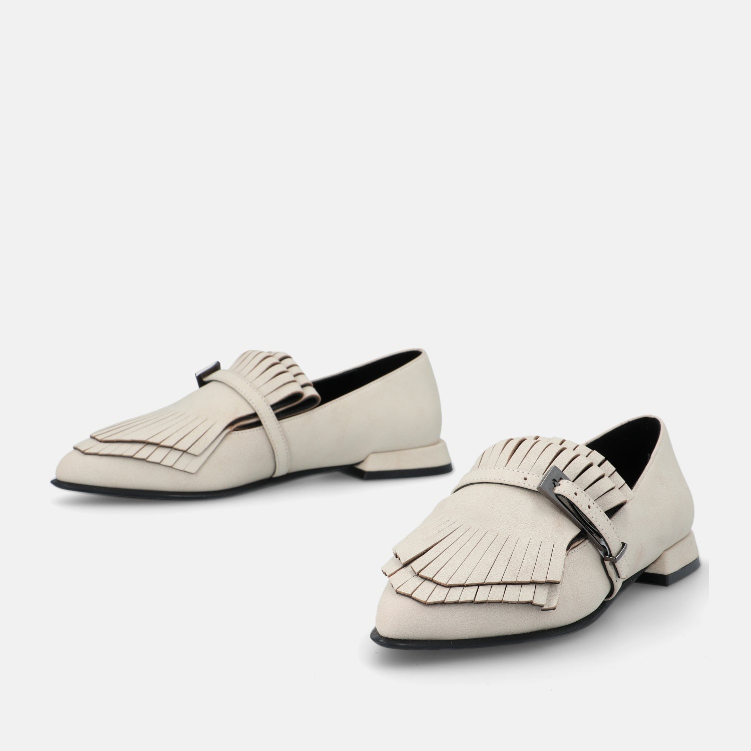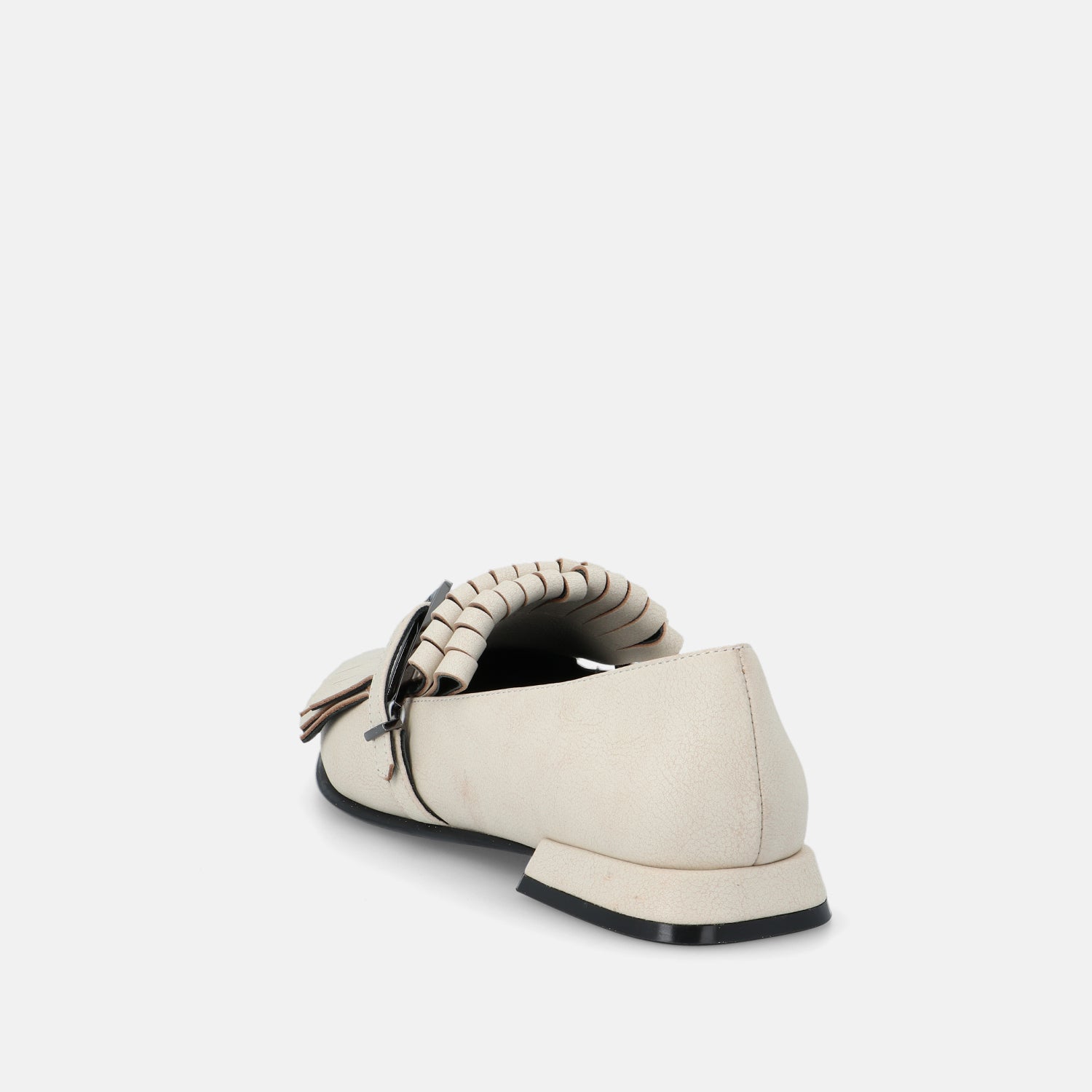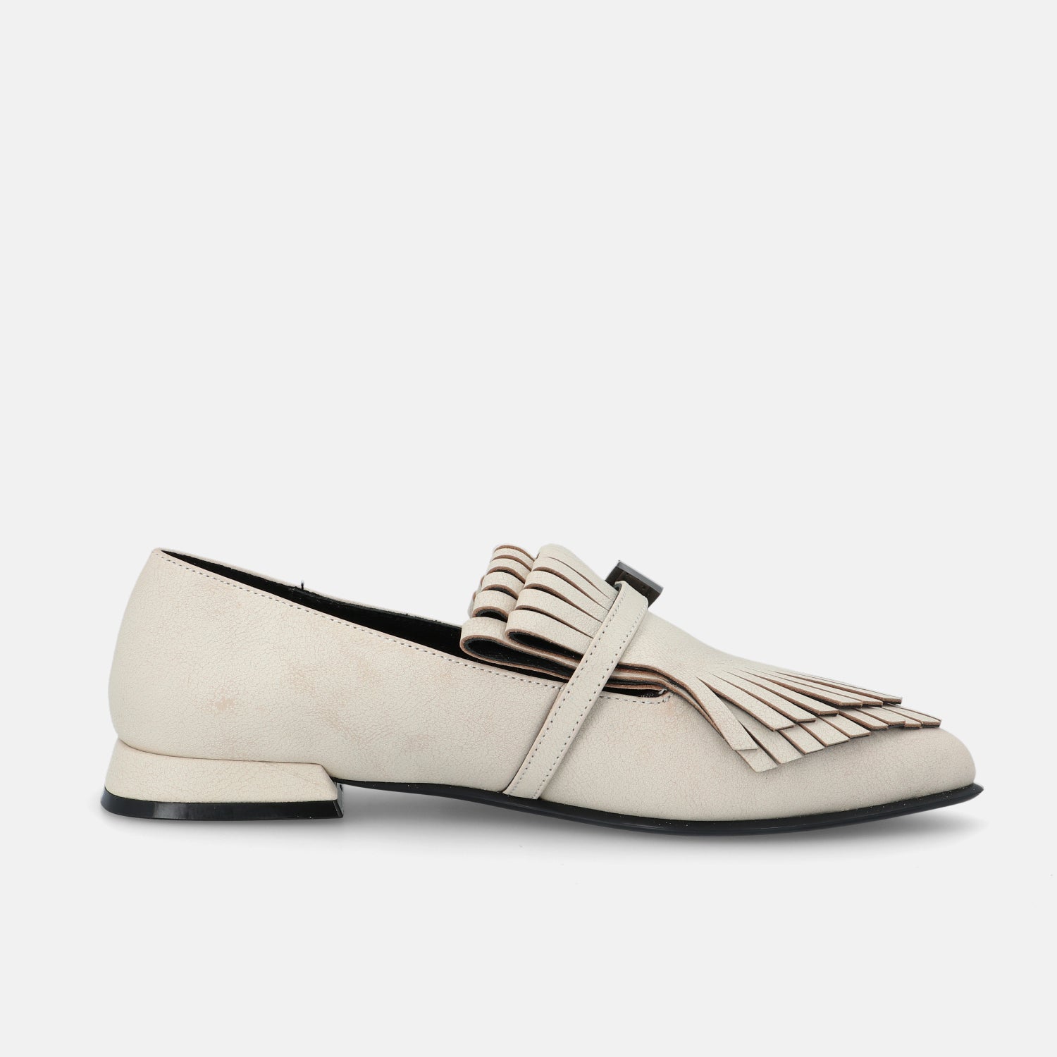 Le ballerine Lim Argot con frangia reinterpretano un grande classico con un tocco deciso e contemporaneo. Realizzate in pelle con effetto cracklé, disponibili nelle varianti bianco avorio o nero intenso, conquistano per il loro fascino vissuto e sofisticato. La punta affusolata è arricchita da una frangia multilivello con cinturino laterale e fibbia, dettagli che donano carattere e personalità al modello, rendendolo unico e riconoscibile.