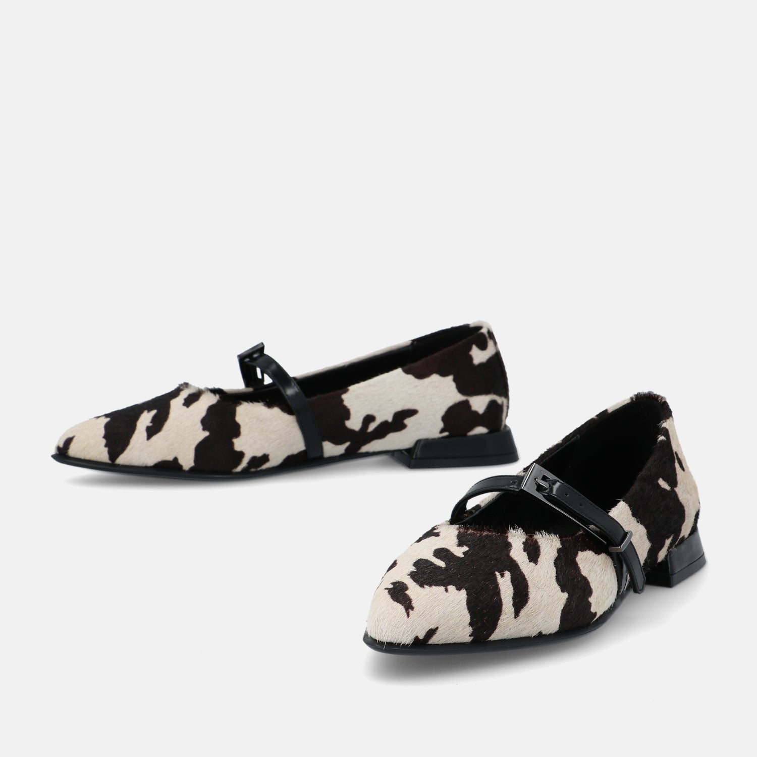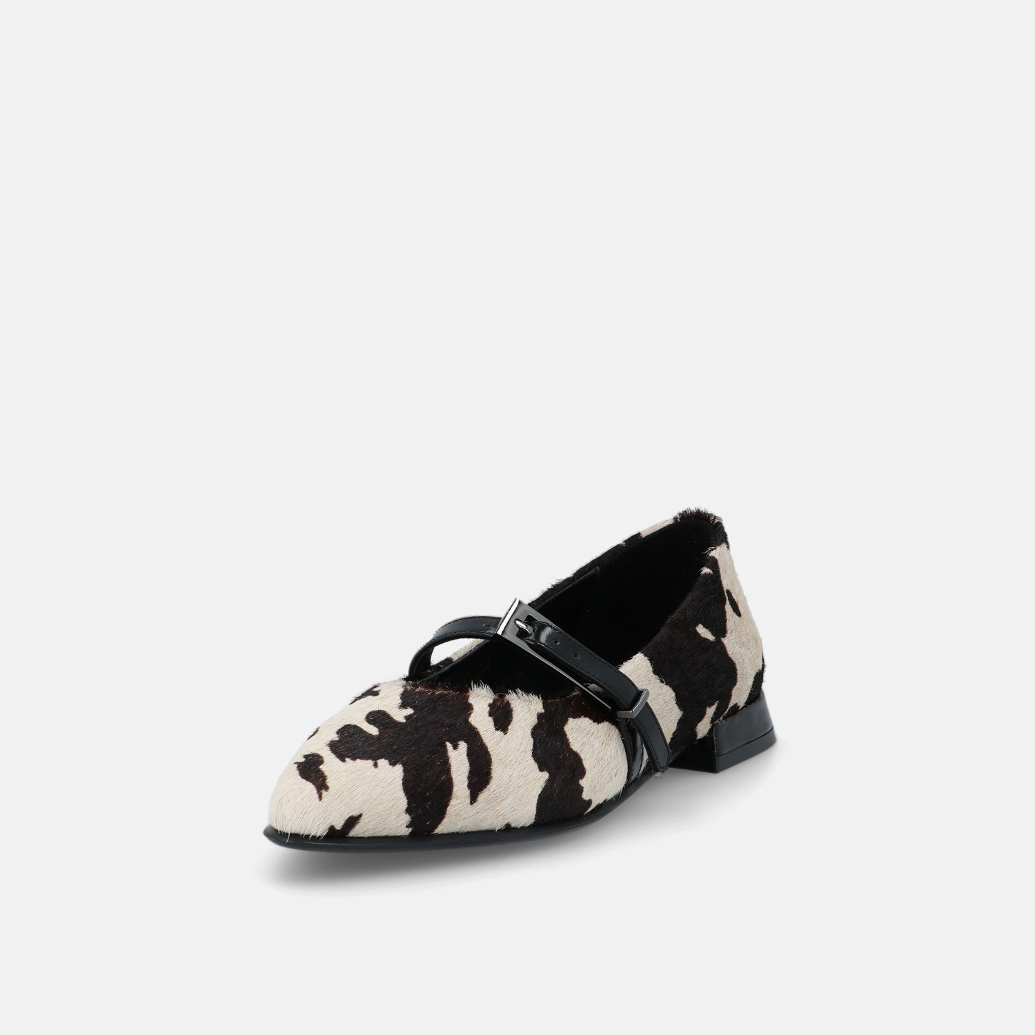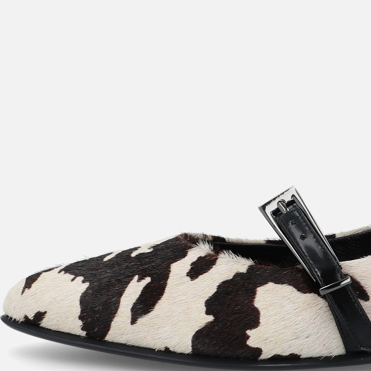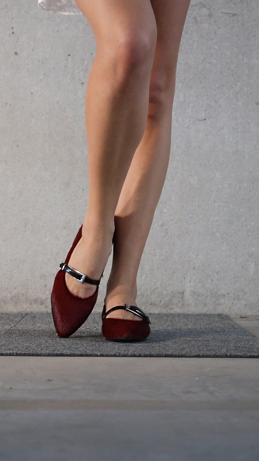 Le ballerine Lim Argot uniscono design sofisticato e materiali ricercati in una versione dal carattere deciso. Realizzate in pelle con tomaia in cavallino, sono proposte in due varianti: l’audace stampa mucca, dal fascino grintoso e contemporaneo, oppure l’intenso rosso antico, che esprime eleganza e personalità. La linea affusolata e il sottile cinturino con fibbia in pelle nera donano un equilibrio perfetto tra femminilità e stile urbano.