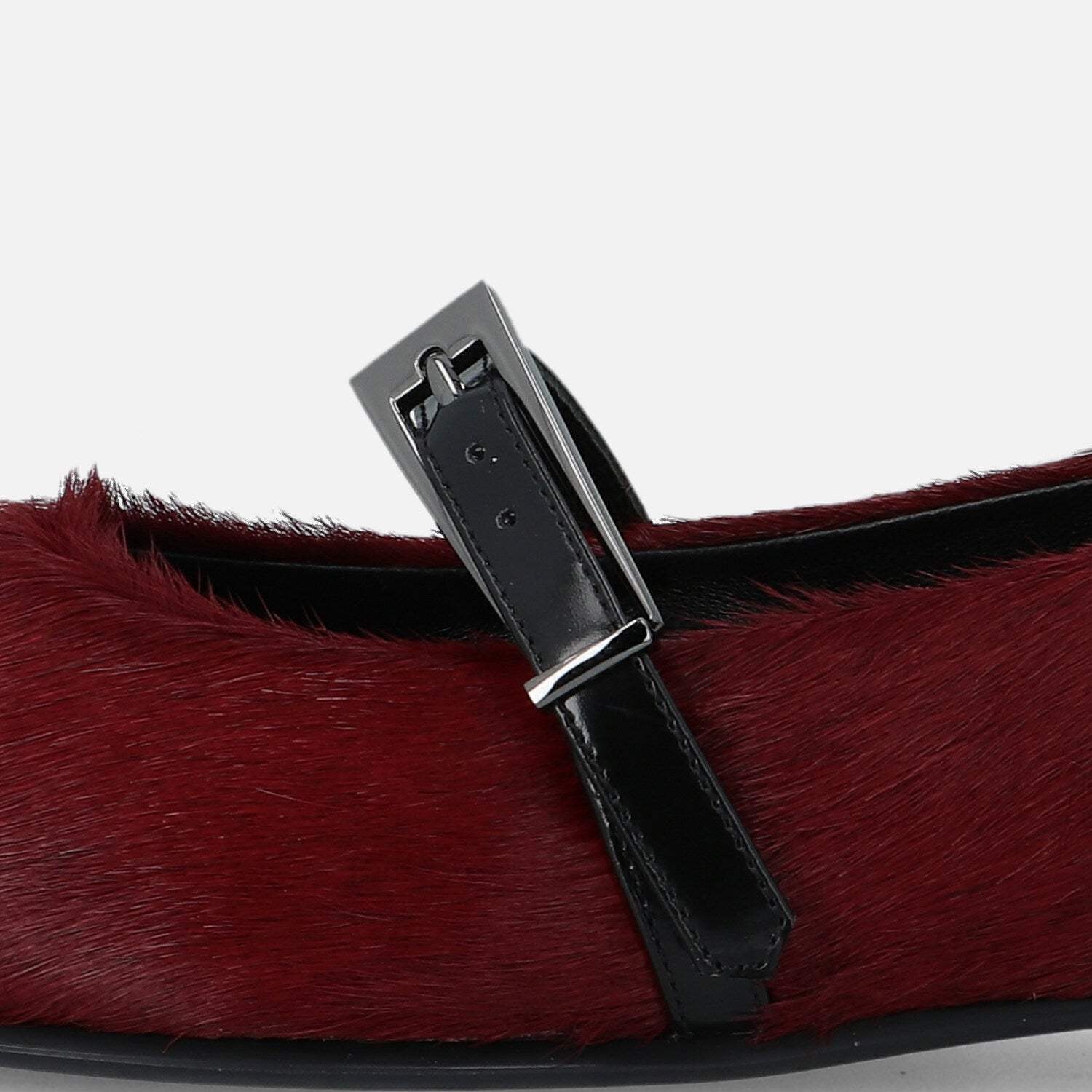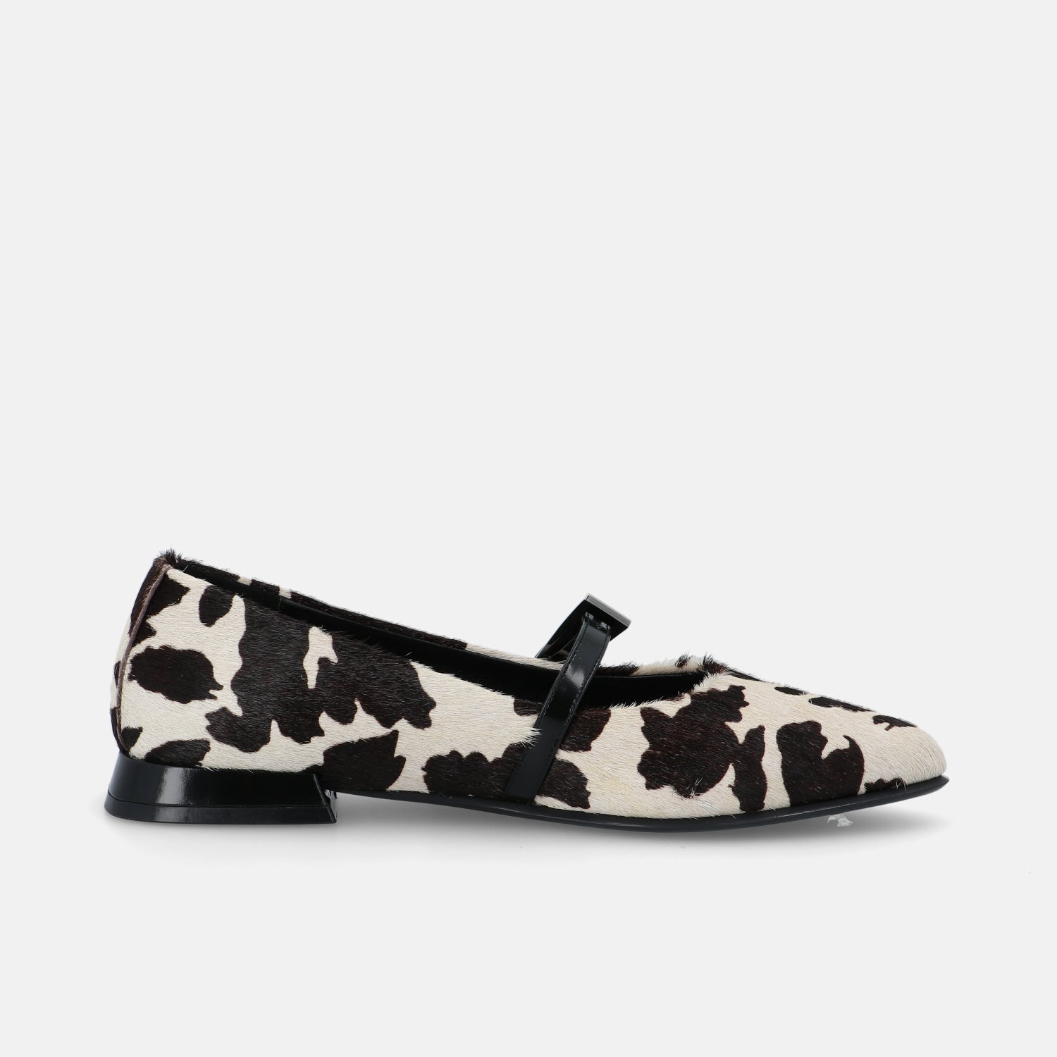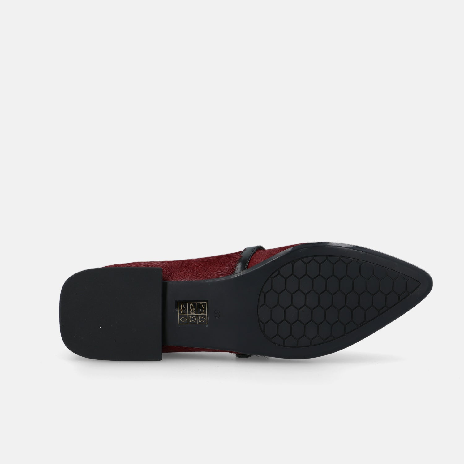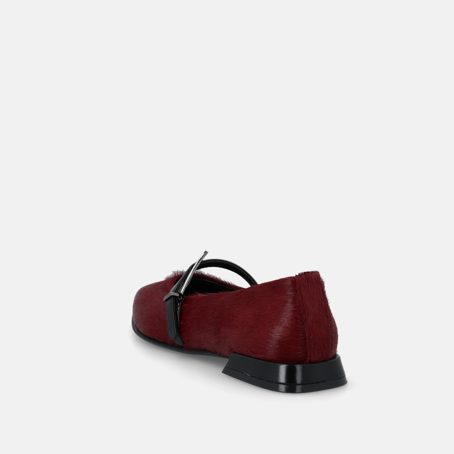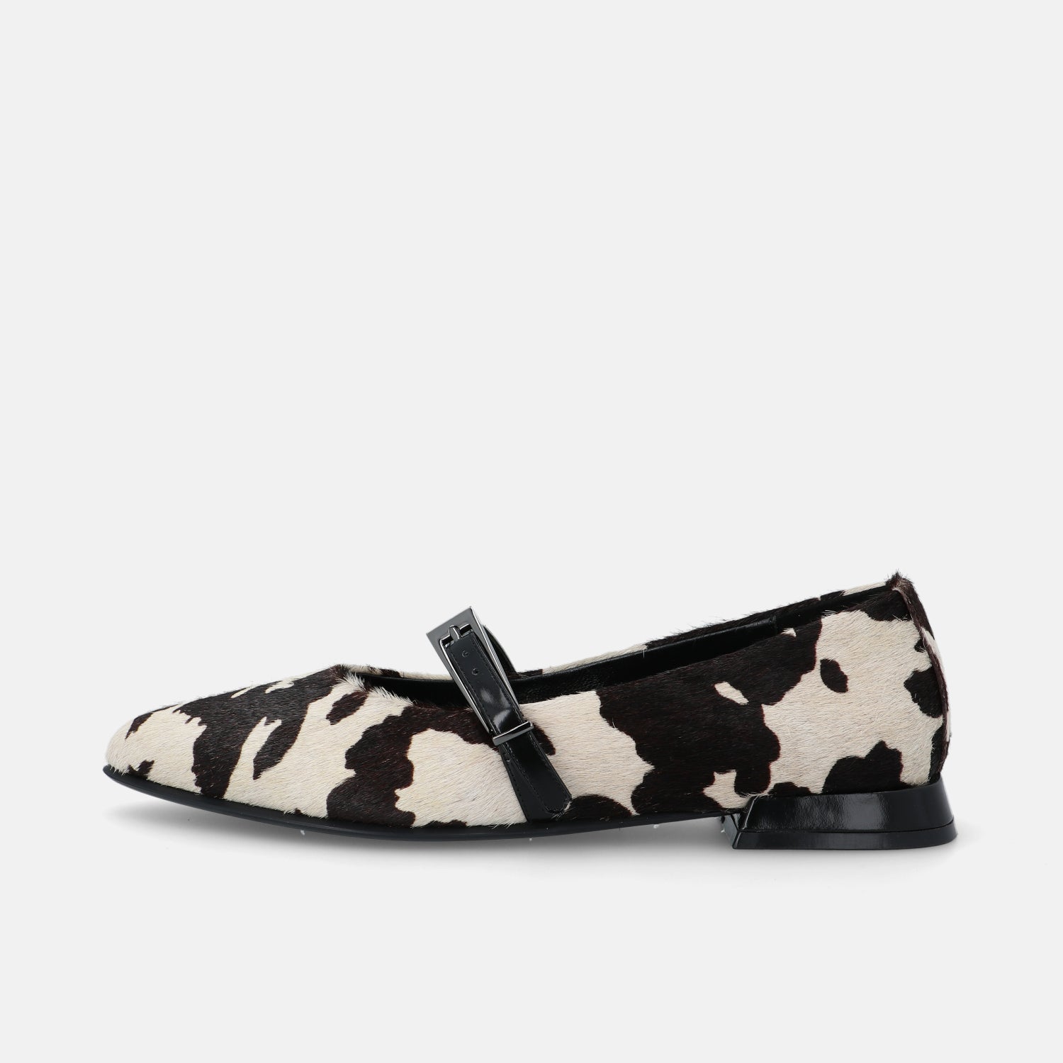 Le ballerine Lim Argot uniscono design sofisticato e materiali ricercati in una versione dal carattere deciso. Realizzate in pelle con tomaia in cavallino, sono proposte in due varianti: l’audace stampa mucca, dal fascino grintoso e contemporaneo, oppure l’intenso rosso antico, che esprime eleganza e personalità. La linea affusolata e il sottile cinturino con fibbia in pelle nera donano un equilibrio perfetto tra femminilità e stile urbano.