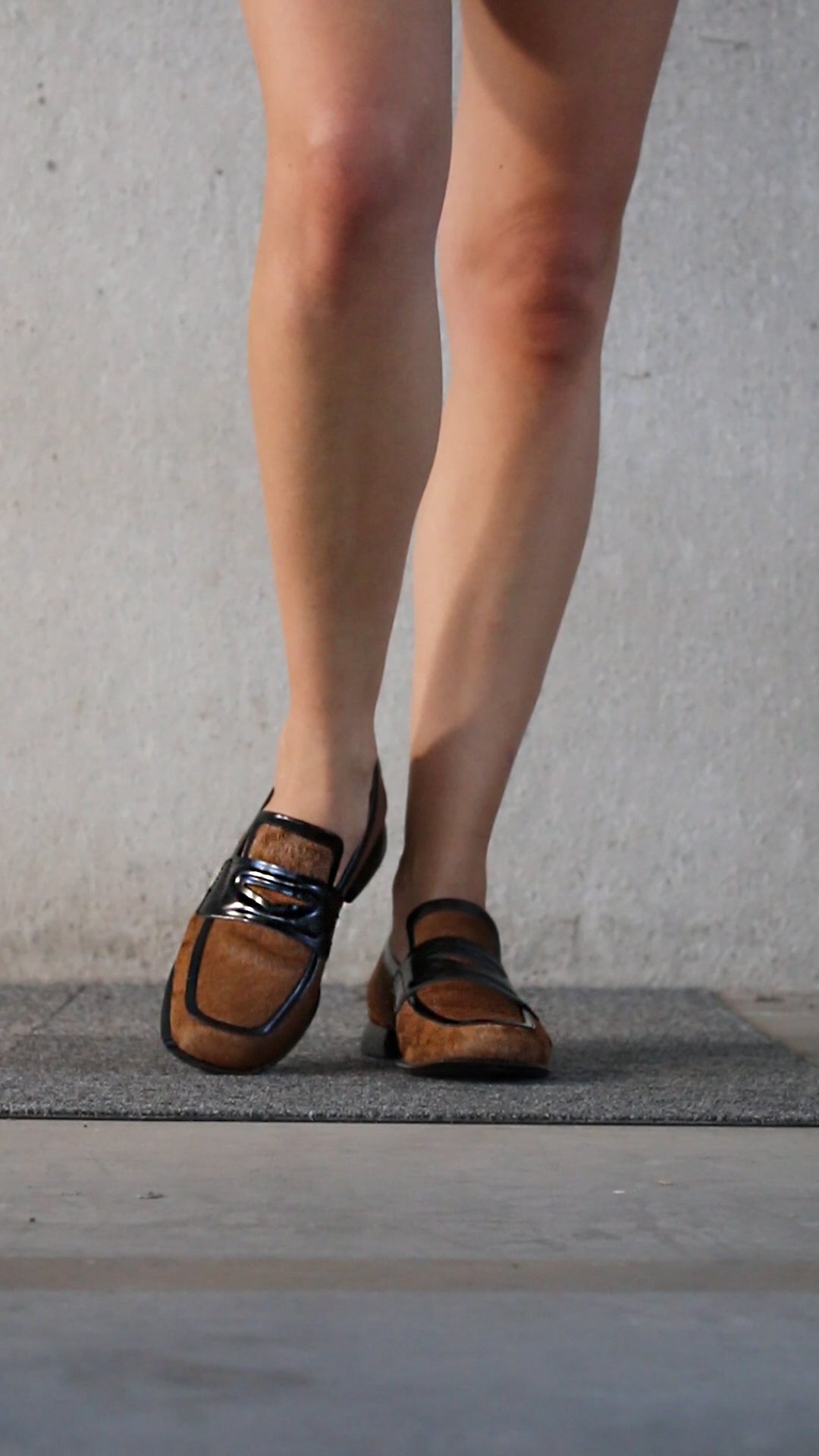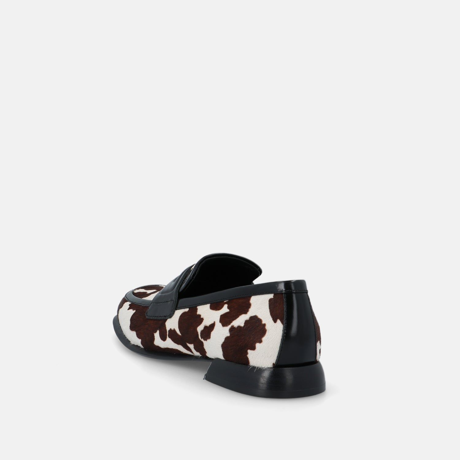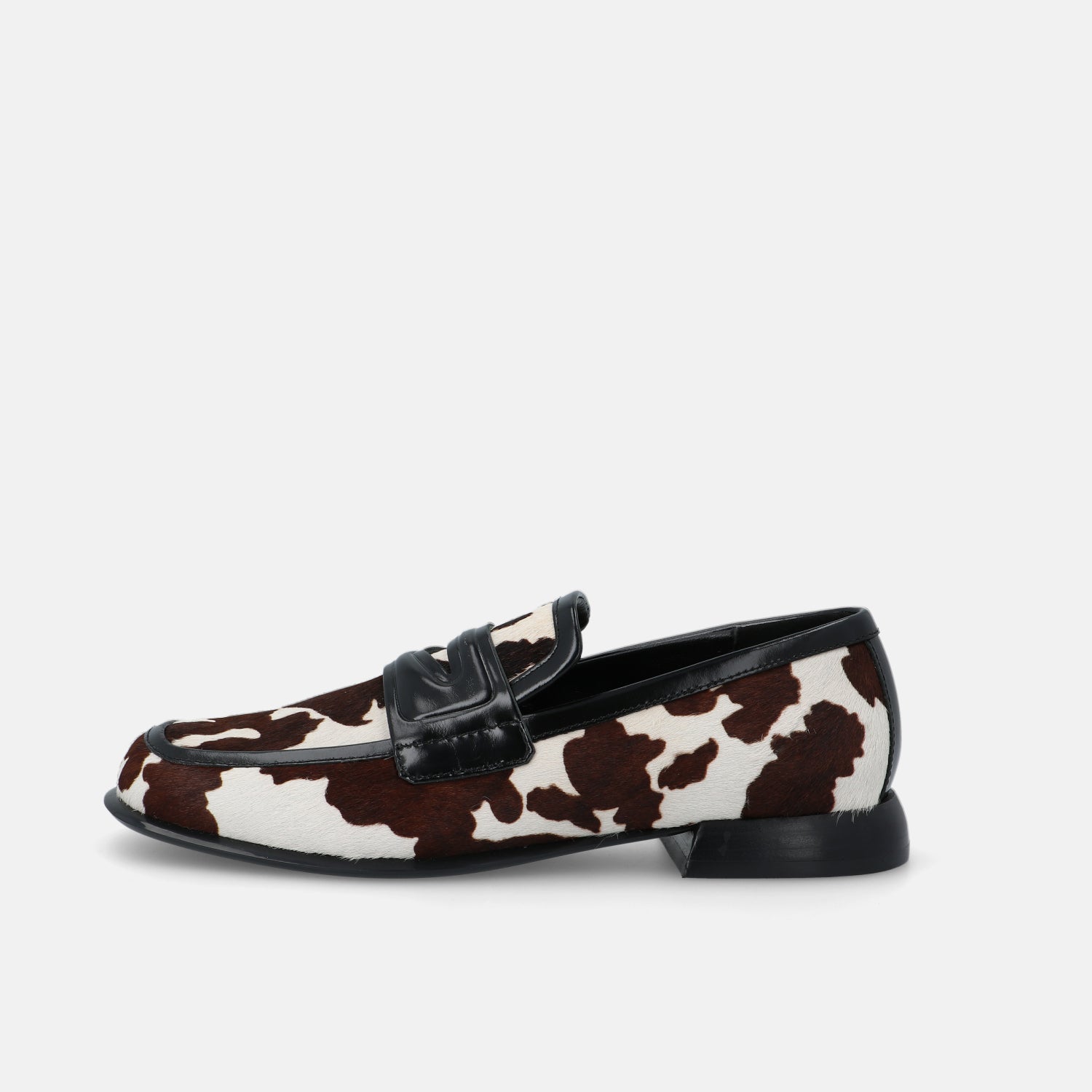 I mocassini Lit Dan rappresentano un incontro perfetto tra artigianalità e carattere contemporaneo. Realizzati in cavallino pregiato, conquistano con la loro texture morbida e ricercata, proposta in due varianti dal forte impatto visivo: la vivace stampa mucca, per chi ama distinguersi con un tocco audace, oppure l’elegante combinazione bicolore cuoio/nero, pensata per chi cerca raffinatezza senza tempo.
