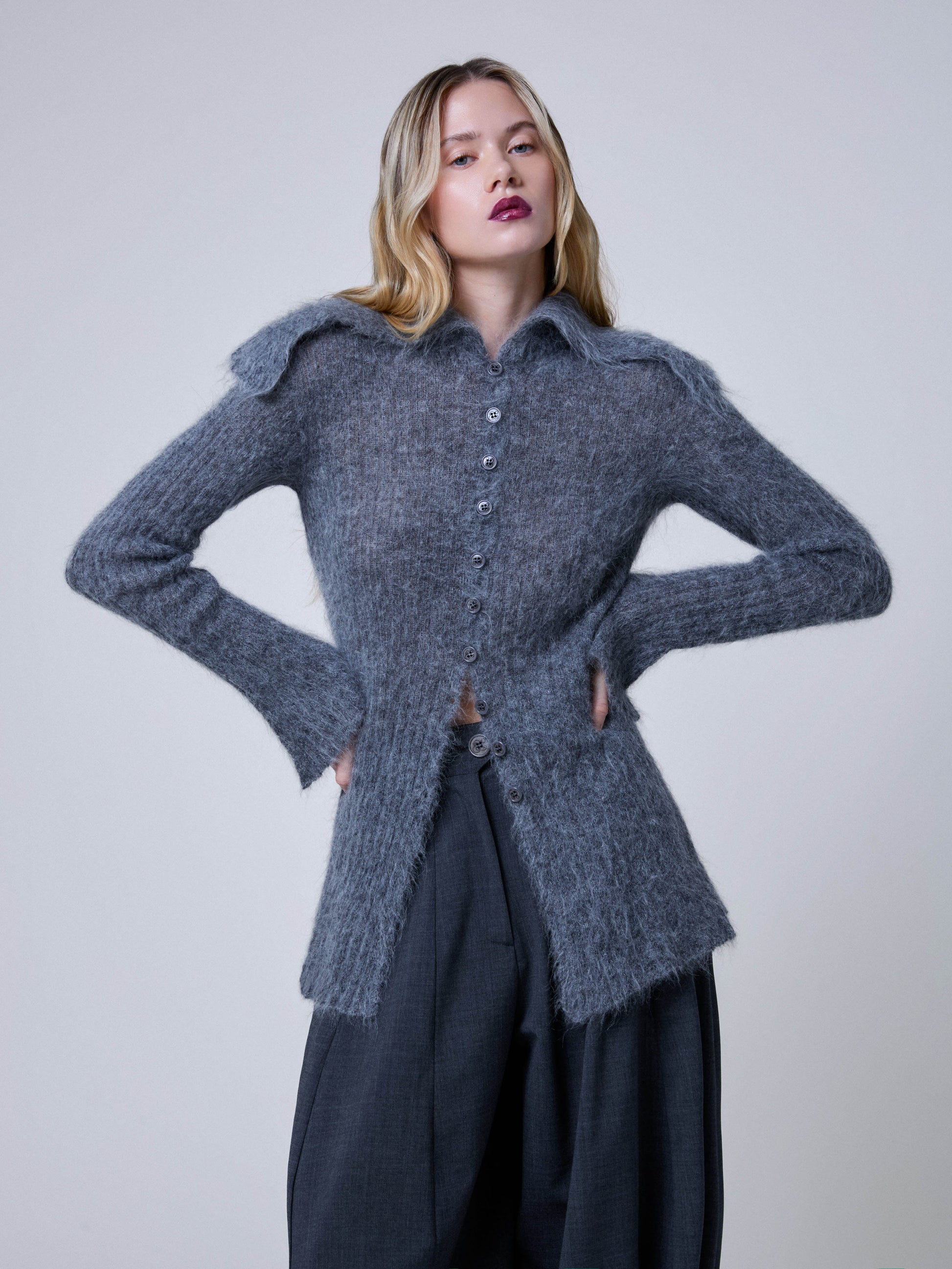 Experience the elegance of the Mabel cardigan, made from luxuriously soft mohair and alpaca wool. Its versatile design allows for seamless wear throughout the seasons, adding a refined and exclusive touch to your wardrobe.