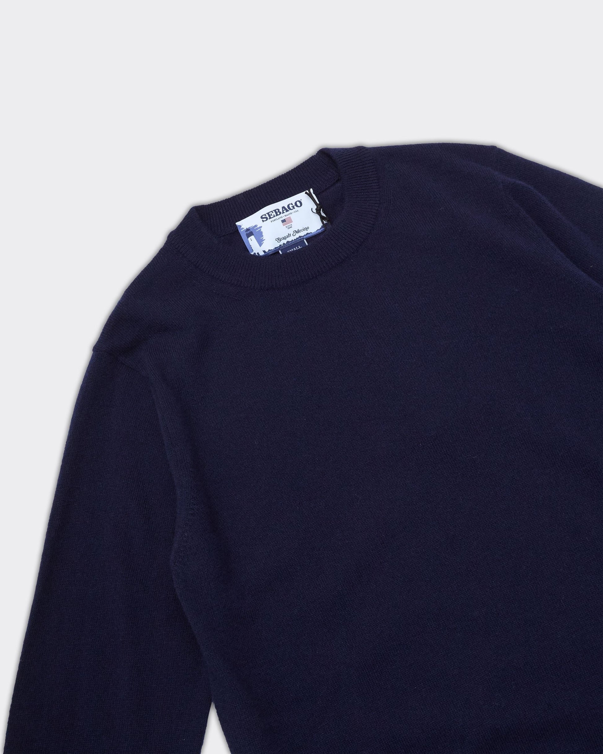 Il viaggio nello stile Sebago continua con il maglione Meduncook, dal nome di un fiume del Maine, territorio d'origine del brand. Il modello è realizzato in lana Super Geelong in finezza 12, un filato che mantiene la forma e risulta incredibilmente soffice e confortevole. La linea classica con collo a giro e bordi a costine rende il capo un vero timeless da abbinare e indossare in qualsiasi occasione.