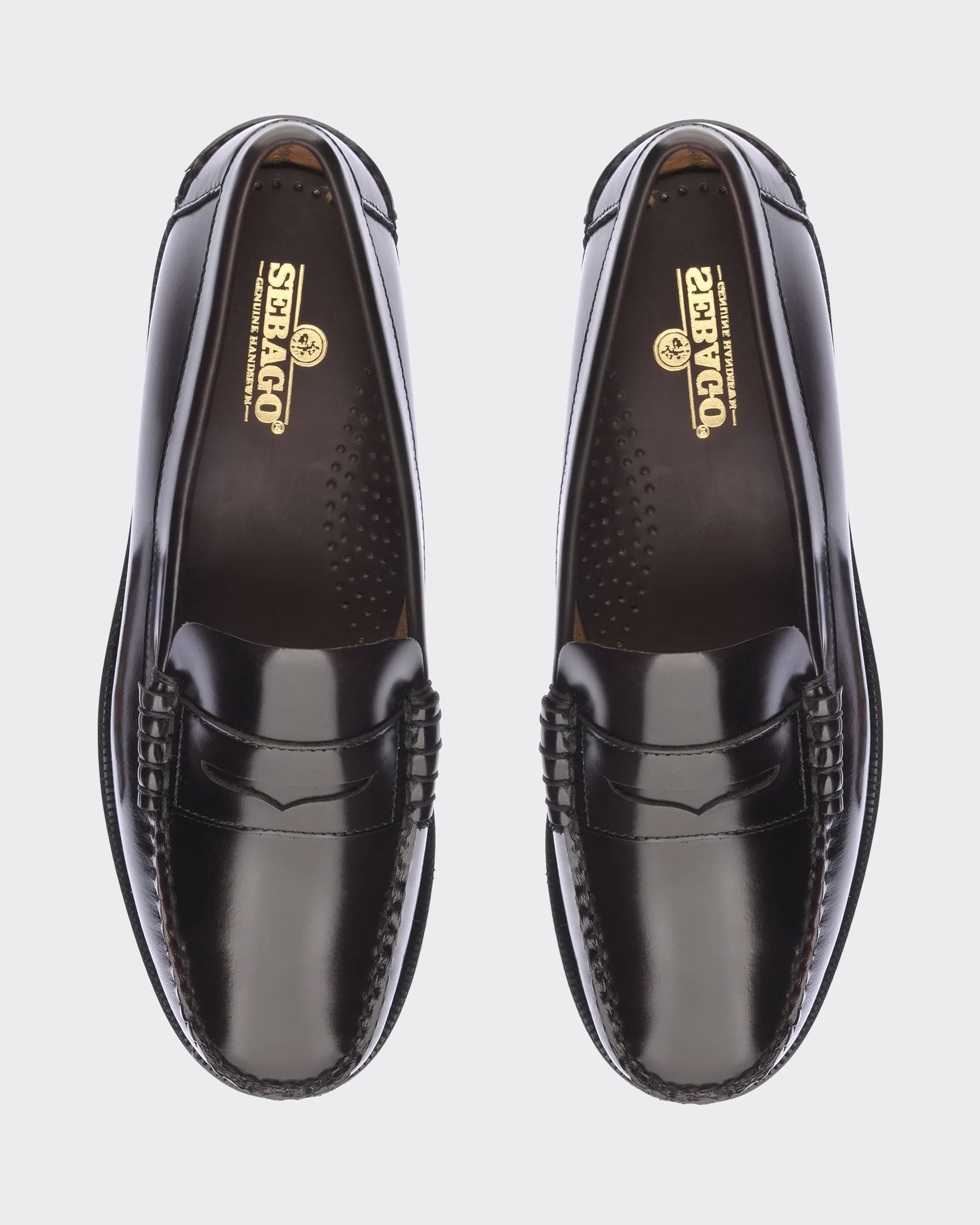Mocassino di colore bordeaux lucido con dettagli cuciture decorative.
