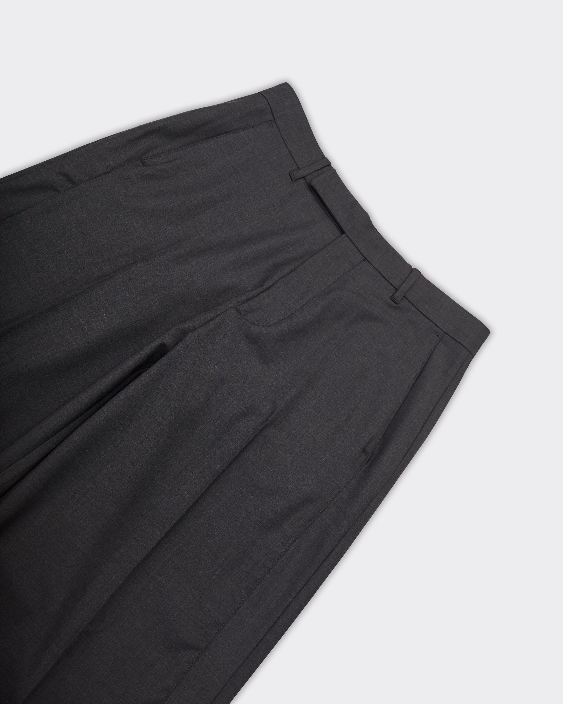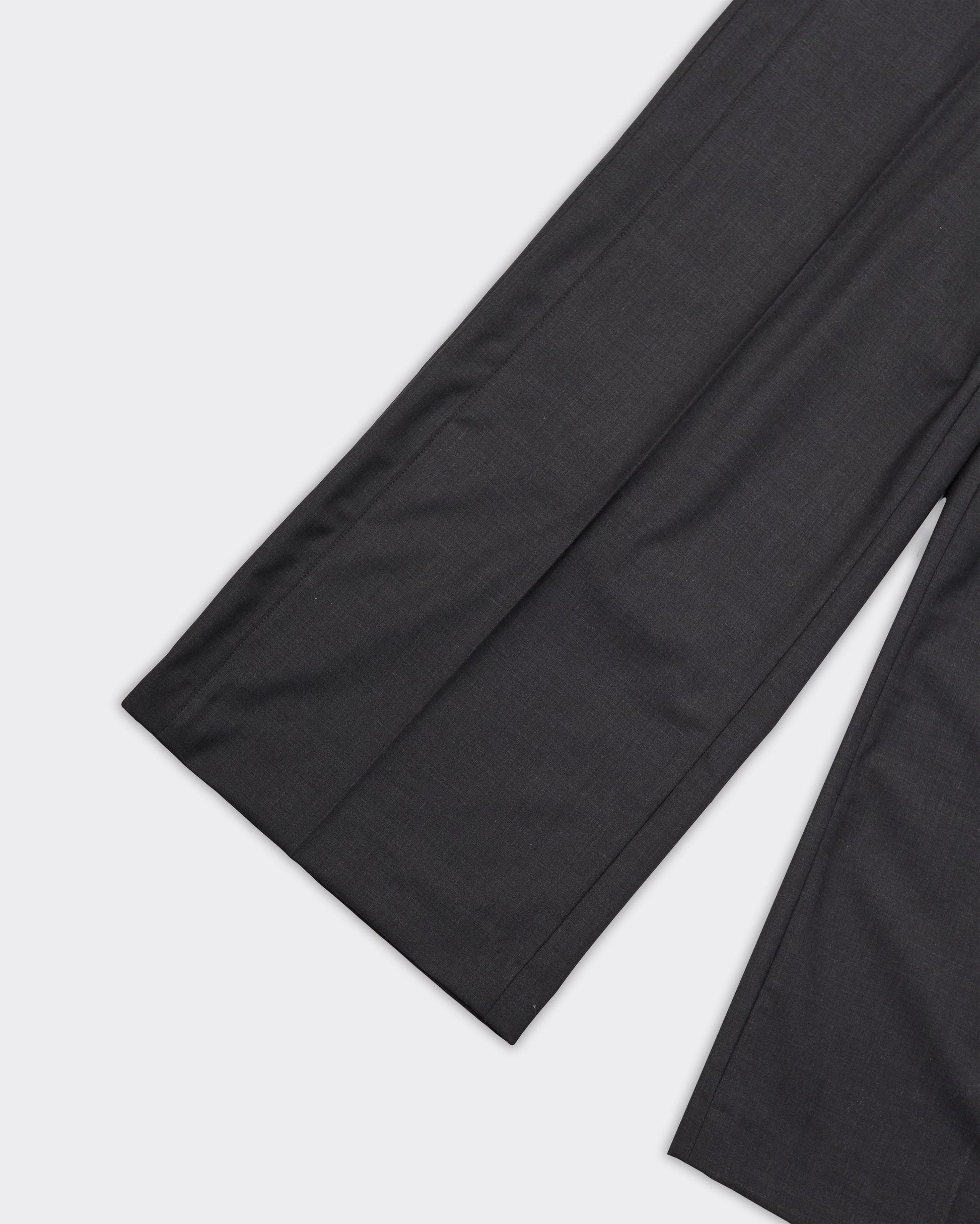 Pantaloni di colore nero con tessuto liscio, featuring tasche posteriori e passanti per cintura.